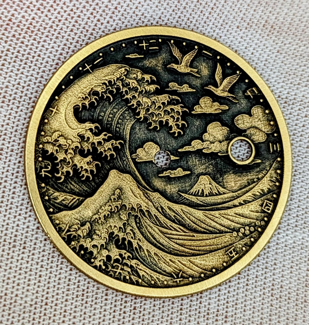 For sale today we have a new CCW Model, the "Great Wave." This dial was designed and made by me on my 50w fiber laser. It has 256 layers to create a 3d effect on the dial, cut out of a 0.5mm sheet of jeweler's bronze, and then hand finished with a Brass Black, polish, and wax. The dial is a beautiful 35mm size and I have housed it in a 39mm dress watch case. Powering the watch is the NH35 automatic movement, an absolute workhorse. The watch features an open caseback with a gold adorned rotor. I have a brown, tan, black, or green leather straps available, as well as the Milanese bracelet. This watch can come in a stainless steel, two tone, or yellow gold case. **I have both the open heart and non open heart versions available.** *All of my watches are completely customizable so if you would like to change anything about the watch please shoot me a message and would be happy to create something custom to fit your needs, or customize this dial further.* **Specs** Case Size: 39mm gold dress case w/ open caseback and 20mm lugs. Dial: Custom designed, lasered, and hand finished 35mm dial featuring the "Tree of Life." 256 layers, for a video of this dial being made please see my IG linked below. Movement: NH35 Movement w/ 41+ hour power reserve, hacking, 24 Jewels, and date function. Open caseback with adorned rotor. 12.5mm Thickness Comes with a travel watch pouch for safekeeping :\] **Condition** Everything is brand new and ready to be shipped. Watch was custom-built by me to the highest quality. Message me if you have any questions. **Asking** $299 (leather strap) or $330 (milanese bracelet) shipped to CONUS. Will ship to other countries please contact me with location and I'll see what I can do. Payment via Venmo, Zelle, Cashapp, or Paypal+3%.