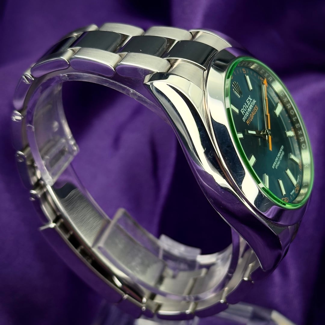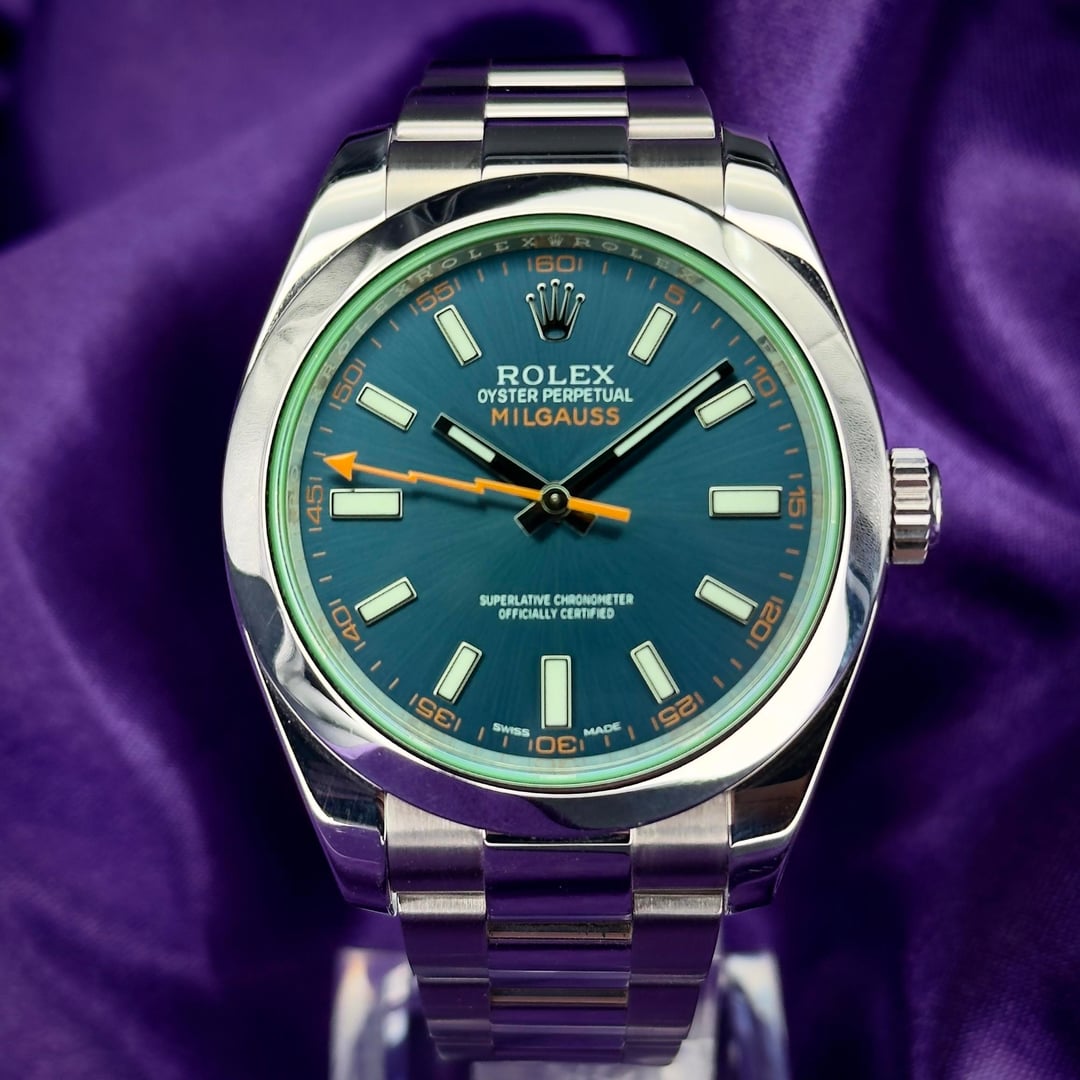 | UNPOLISHED Rolex Milgauss BLUE Green Stainless RANDOM SERIAL 40mm 116400 GV collectorswatches (8917) |