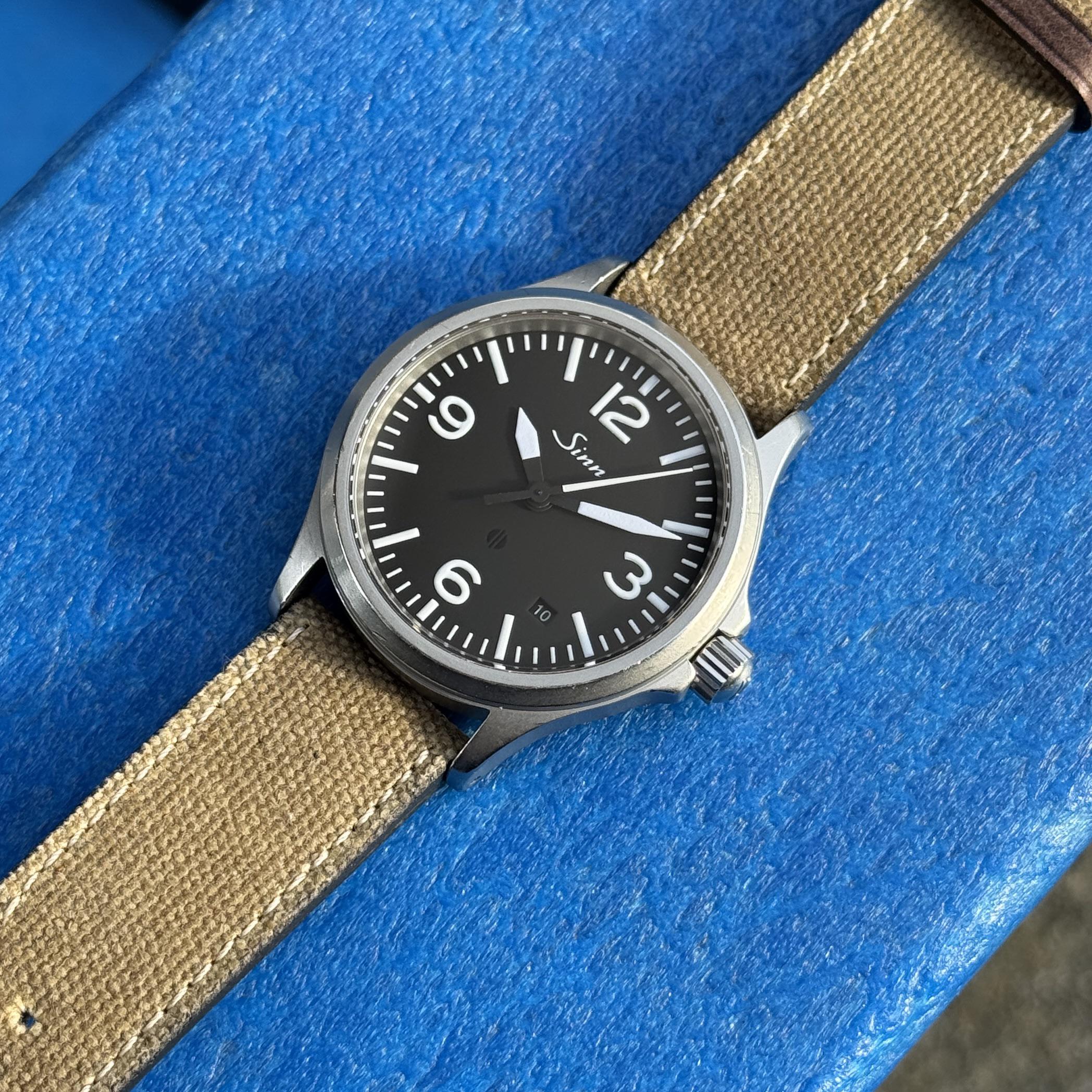 Up for sale is my Sinn 656 with its incredibly legible 3 6 9 12 dial on a Sinn canvas strap. The 656 is a discontinued model and overall a superior 556 with antimagnetic field resistance up to 80,000 A/m and, thanks to its solid case back, is also a bit thinner. Watch only. This is a fantastic watch and has been a fun companion. As is usual for any 656 / 556 that has been worn, it has a number of small marks, shallow dings throughout the case sides and bezel edge, and light wear to the outer AR coating on the crystal. All functions work as they should, the ETA 2824-2 automatic is keeping excellent time within a few seconds per day, and the crown screws down smoothly. Specs: Case diameter: 38.5 mm / Lug to Lug: 45 mm / Lug width: 20 mm / Case thickness: 10 mm Photos: https://imgur.com/a/ulXsCOI Video: https://imgur.com/a/UR8xgi4 Timestamp: https://imgur.com/a/E4NfPwk $1050 to CONUS buyers - UPS Insured shipping included. Payment via Zelle or PayPal with positive feedback. Please check the photos carefully before purchasing as they are part of the overall description - all sales are final. l've had many successful transactions and I'm looking forward to another smooth deal. Please let me know if you have any questions!
