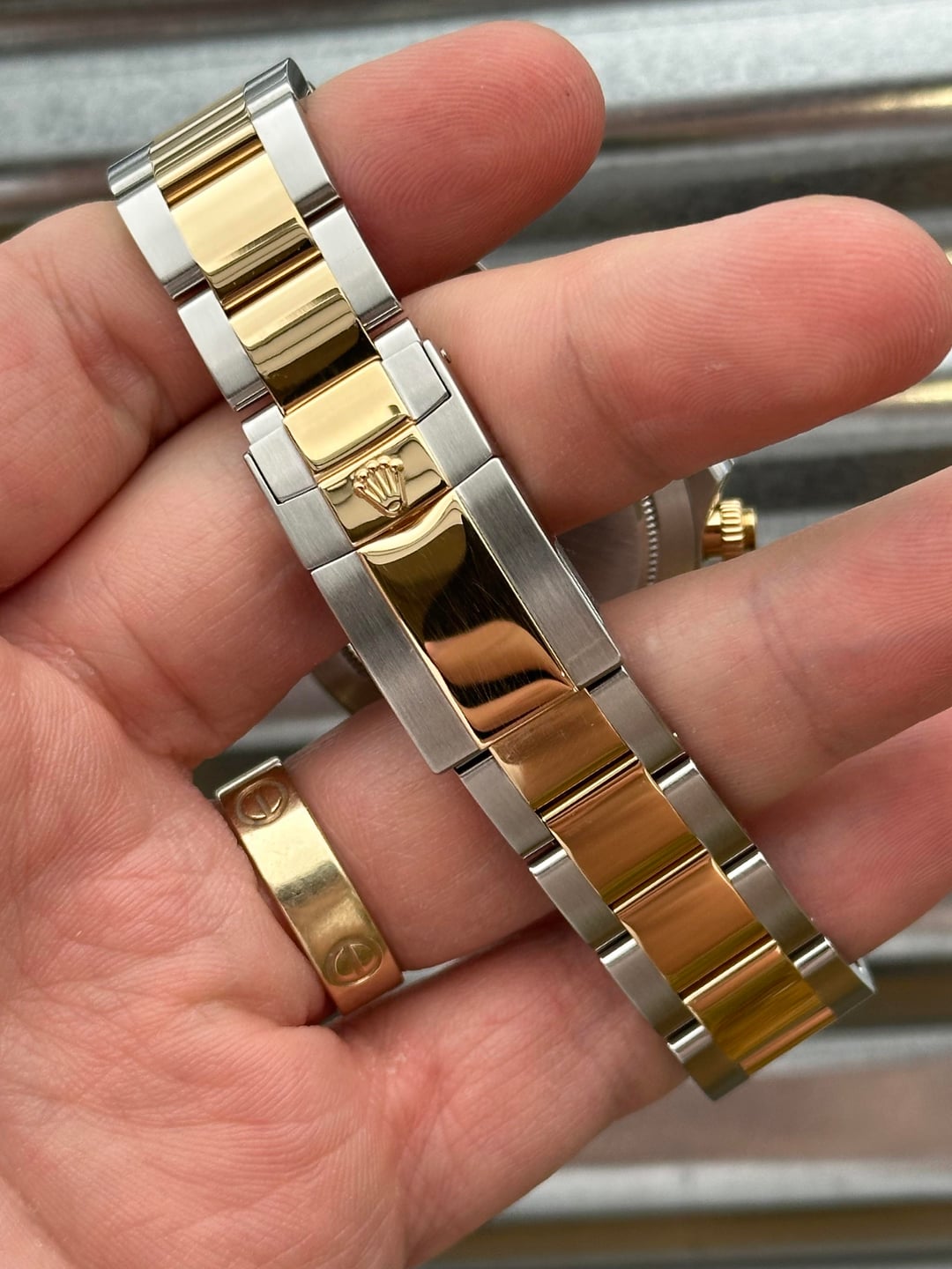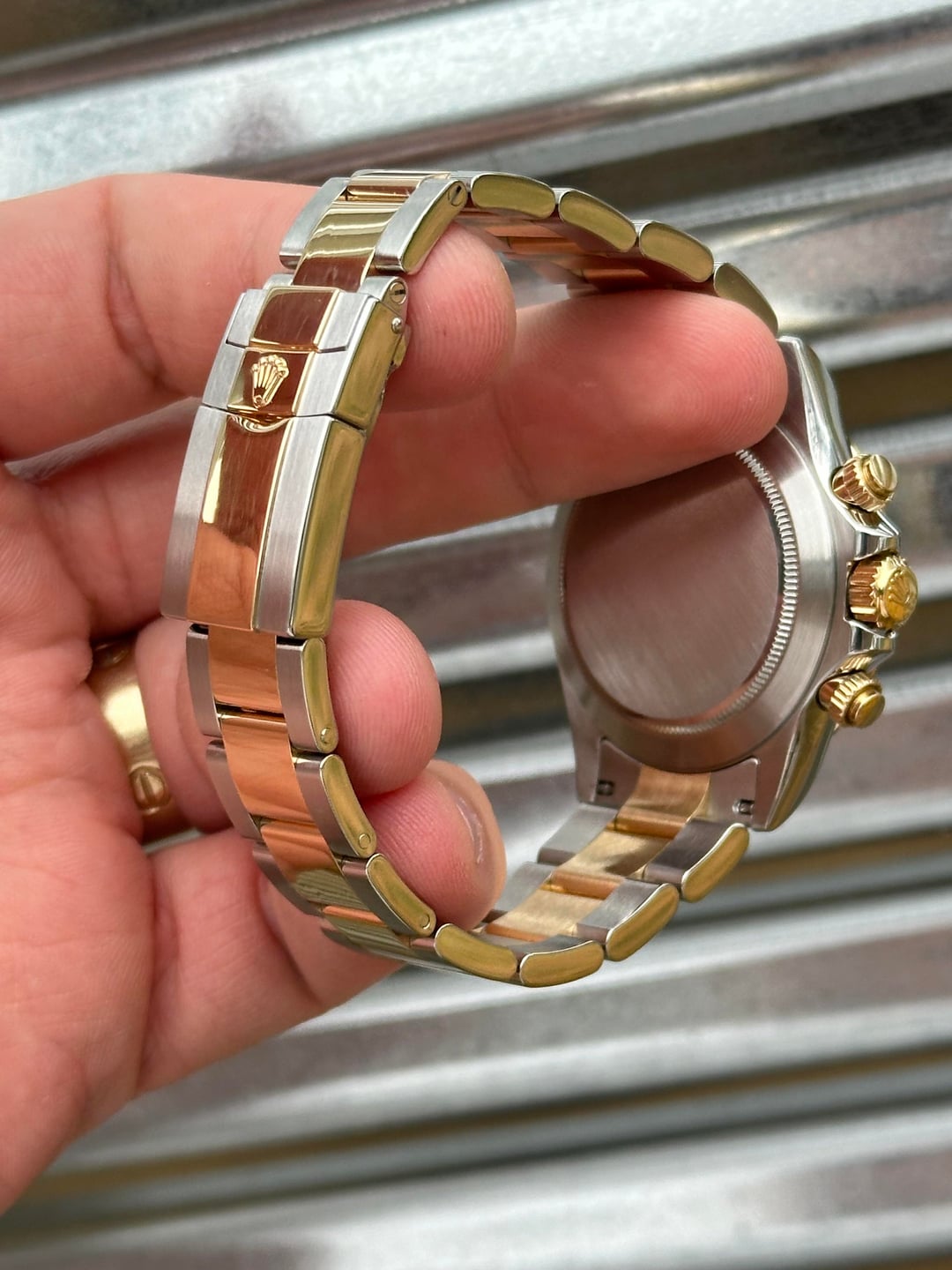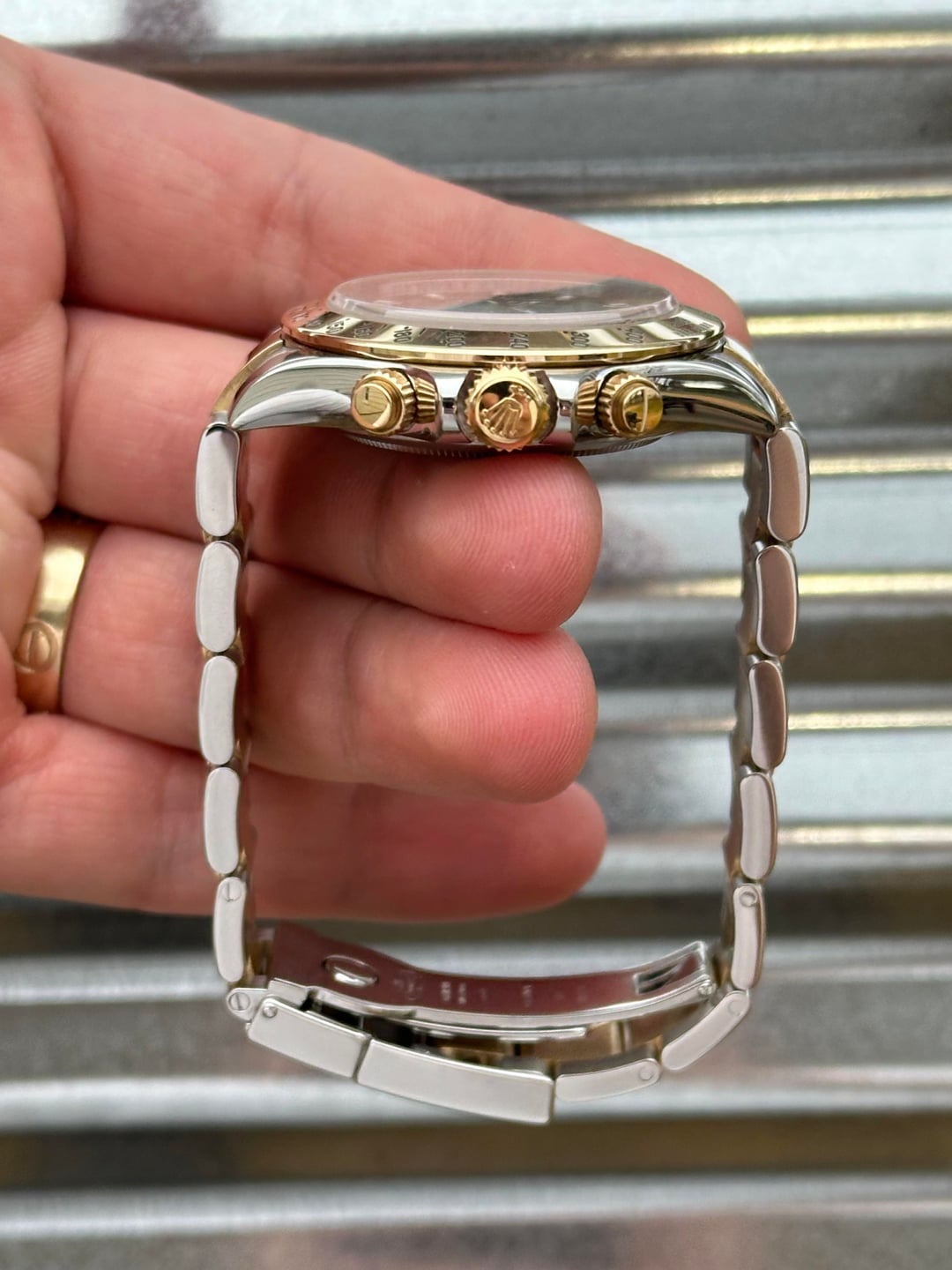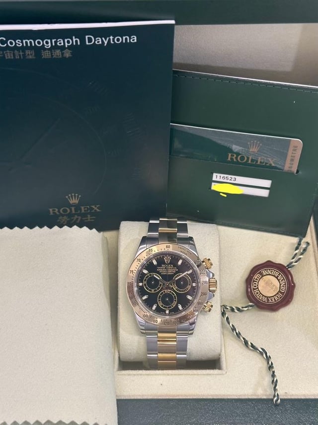 Here is a super clean and crisp two-tone Rolex Daytona from 2008. Full set, black dial, and in excellent shape. What else could you want? Reference number: 116523 Year: June 9th, 2008 ****COMES WITH BOX AND PAPERS**** 💰1️⃣8️⃣,5️⃣0️⃣0️⃣+✈️📦 Overall this watch is in excellent shape. The case is clean all around. Free of any serious dings or dents. Dial and hands are clean with no corrosion. Pushers work perfectly: The bezel is in great shape. No scratches or chips on the crystal. Clean finish on the bracelet links. The gold is clean all around. Tight band also. The coronet on the clasp is thick and well defined. The clasp is also clean as well. Full bracelet with 12 Links on the bracelet. Fits about a 7.75-8” inch wrist. 💰1️⃣8️⃣,5️⃣0️⃣0️⃣+✈️📦 We accept Zelle/Wire. Shipped with fully insured overnight once payment clears, NO EXCEPTIONS. We have plenty of references across different platforms. Follow us on IG for more deals: @215watches [photo album](https://imgur.com/a/6dFUhco) [time stamp](https://imgur.com/a/XV2J5xI)