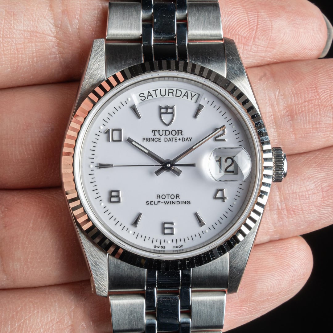 | TUDOR Prince Date Day 76214 White Gold Fluted Bezel with Silver Linen Dial timeless-elegance (271) |