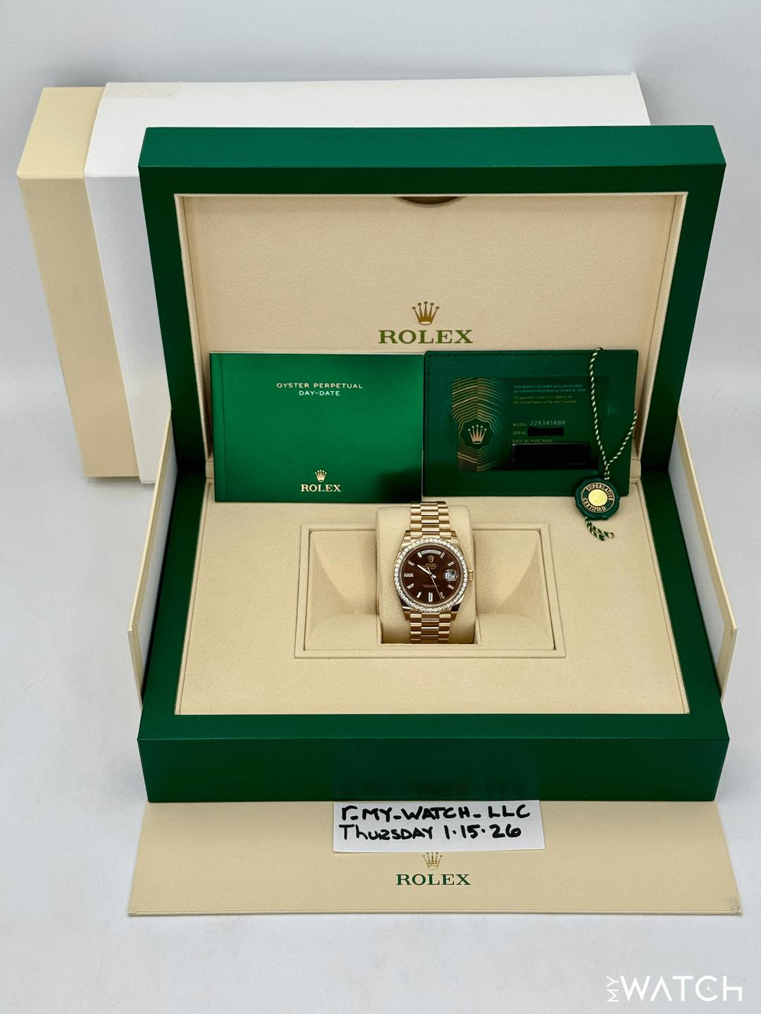 [WTS] 2022 Rolex Day-Date 40mm 228345RBR Rose Gold Chocolate Diamond Dial (STICKERED) - $64,000