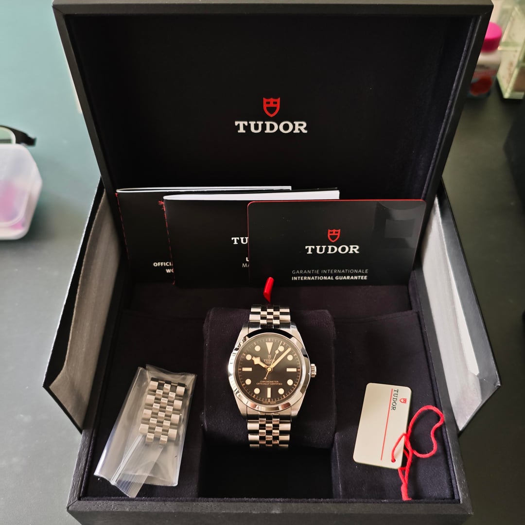 **Tudor Black Bay One 36 79640-0001** Condition: Preowned - Excellent Box and Papers: Yes, dated May 2023 (Warranty till May 2028) What's Included: Watch, Double box, Papers, White Tag, Full links 💰 Price: USD$2,899 FIRM (Includes Shipping, no tax / duties to US) 💳 Payment Method: Zelle, Venmo, USDT, Wise 📫 Shipping Method: Worldwide via Fedex International Priority Timestamp: Last image in album Description: Hi Watchexchange, today I have the updated Black Bay One 36 in sunburst anthracite dial up for sale. This reference was released during W&W 2023 with the updated 5 link bracelet with its T-Fit Clasp. The new sunburst anthracite dial plays beautifully in the light. With easy micro adjustment, COSC certified movement and 70 hours of power reserve - it makes this piece an extremely daily wearable watch! Price is firm, only PM if you are agreeable to the price or have questions about the piece. Happy to hop on a call to show the piece to any interested buyers! Not looking for any trades, thanks!