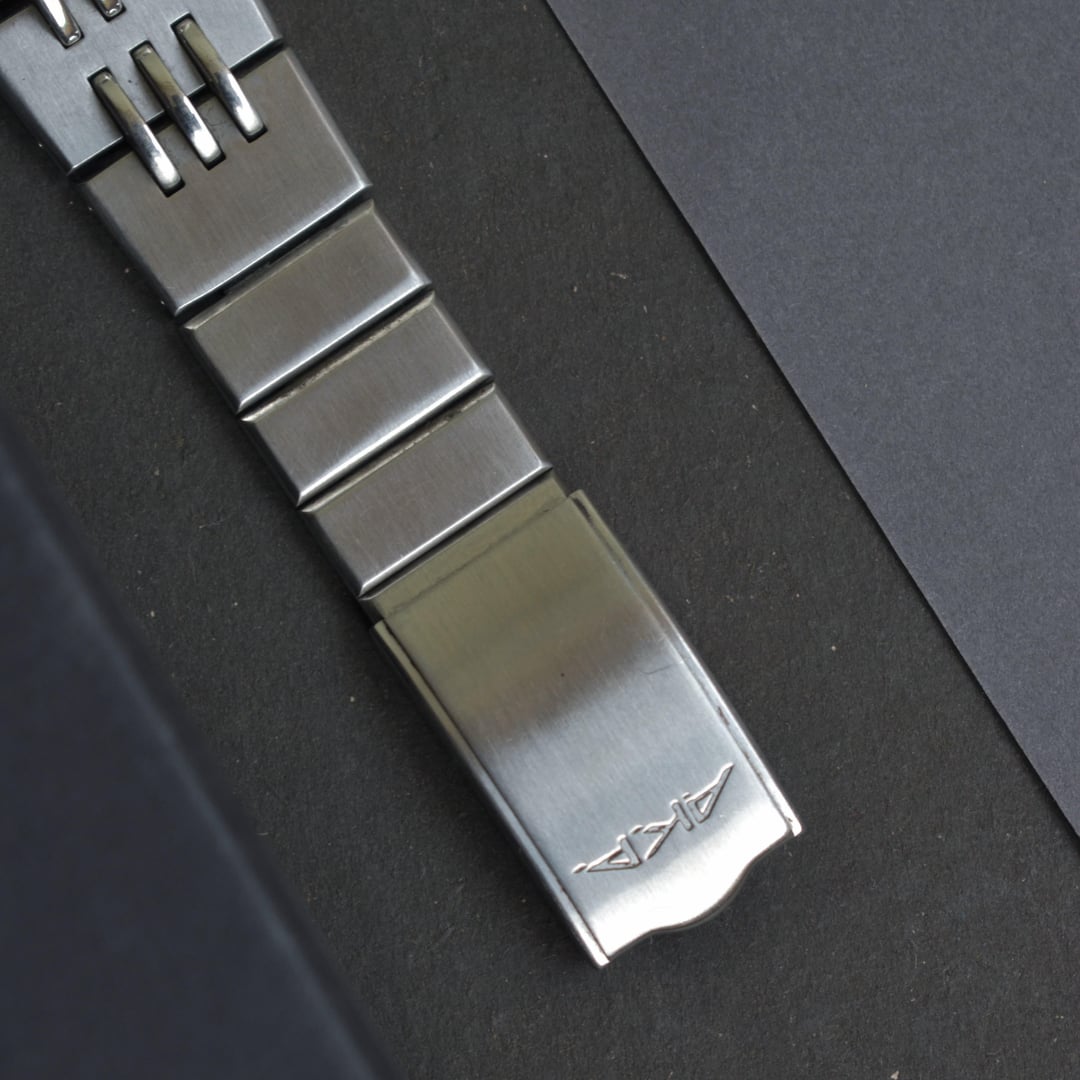 Up for sale is a vintage Seiko Alba Bullhead with reference V707-0A20, dating back to April 1990. The watch is powered by a quartz movement and housed in a distinctive 40mm bullhead-style case (excluding crown), giving it a bold and sporty presence. It comes attached to its original bracelet, which can accommodate wrists up to 7 inches. The watch displays noticeable signs of wear, consistent with its age, all of which are clearly visible in the provided photos. 💰 Asking $185, shipped via FedEx 💳 Payment accepted through Zelle, Wise, or Wire Transfer 📦 Please note: watch will be shipped from Asia and Shipping will be handled within 2–3 business days after payment confirmation. Additional pictures or details available upon request.