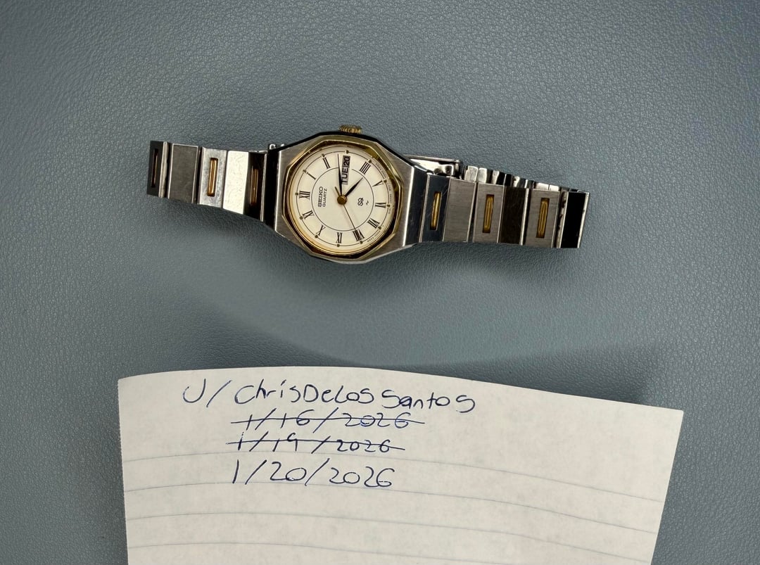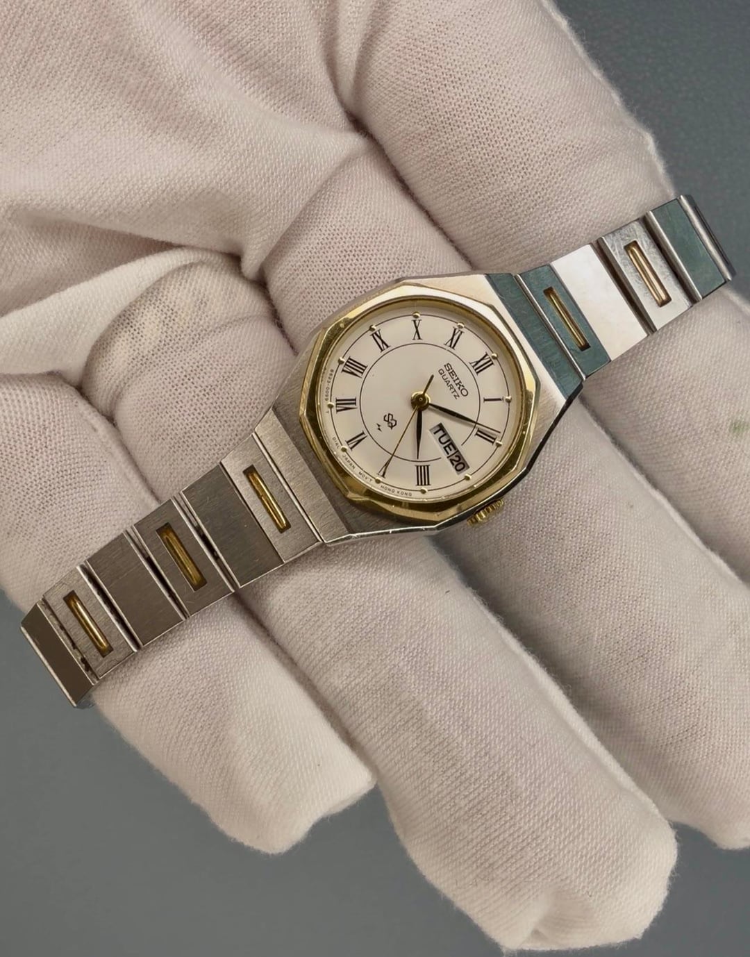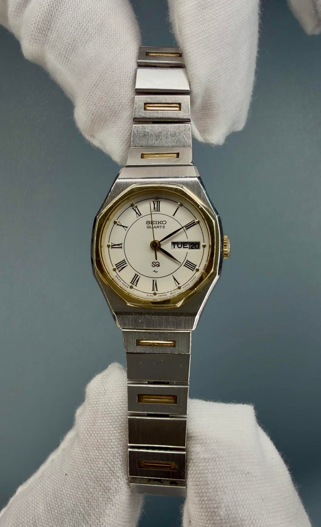 Ladies Seiko “Royal Oak” 8523 S&G -Details: A beautiful vintage ladies Seiko 8523 S&G! This piece features the iconic octagon bezel with a white Roman numeral dial, and day/date function. Watch only, in used condition but is still a beauty overall! See the photos for yourself! This is the perfect watch for anyone who wants to get the “Oak” look for their wife-gf without breaking the bank! Or for any lady looking to up their style! -$127 Shipped -Includes shipping (US). I accept Venmo, Zelle, CashApp, and PayPal (+4% if using G&S) -Case size: 24mm -Movement: Quartz -Timestamp: https://imgur.com/a/Ffaav5l -Location: Downtown Los Angeles -IG: @ColeccionDeLosSantos -TikTok: Chris.DeLosSantos