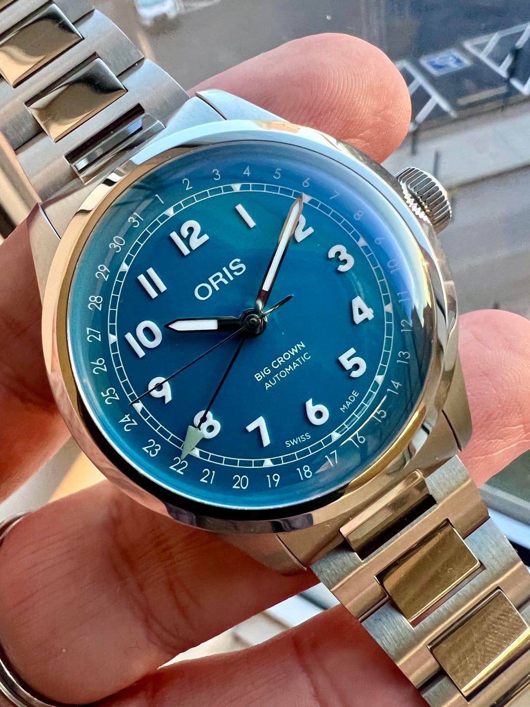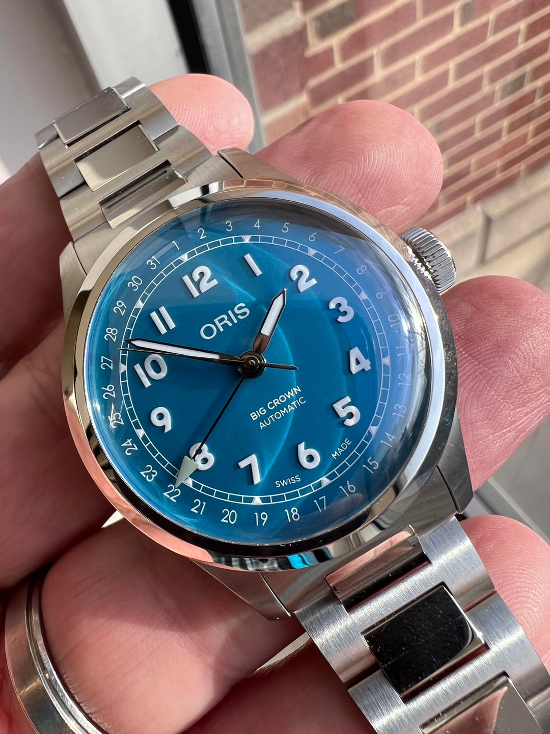 Hi Watchexchange! Up for grabs is my Oris Big Crown Pointer Date (BCPD). The star of the show is the dial color. I don't know what color Oris calls it off hand, but it's a punchy turquoise/teal blue (that blue-green “tropical water” vibe) and it absolutely makes the watch. Is it still a BCPD without the coin edge bezel? I say yes. And they got rid of the cathedral hands, so that's a plus. Condition: The watch is unworn but has some handling marks on it. Scope of delivery: Box and papers. Update from last post: Warranty was activated and expires 1/2029. Specs: Reference number:01 754 7798 4065-07 8 20 06 Case size: 40mm Lug-to-lug: 47.5mm Case thickness: 12mm Water resistance: 50m Price: $1500 shipped CONUS. Methods of payment: Zelle is preferred. Trades: Not at this time. References: Hundreds of successful transactions in watch trading. See my eBay account under the same name. Many references in Facebook groups, watch forums, and on WUS.