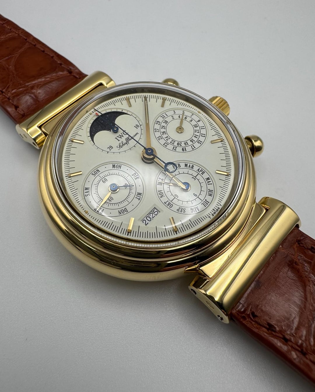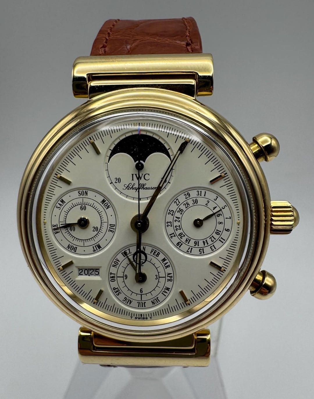 The IWC Da Vinci Perpetual Calendar Ref. IW3750 in yellow gold is a remarkable example of sophisticated watchmaking. Recently acquired from its original owner, who cherished the piece for over two decades, this watch has been rarely worn and remains in outstanding, all-original condition. The yellow gold case exhibits visible but minimal signs of wear, a testament to its careful preservation. The original plexiglass crystal has been lightly polished, maintaining its clarity and character. The white tritium dial is in excellent condition, with all tritium plots intact and evenly aged to a warm yellow hue, perfectly matched by the original hands. What sets this piece apart is its completeness. Accompanied by all original boxes, papers, and documents, it includes the rare IWC watch winder. While the winder is currently non-functional, it is believed that replacing the adapter could restore its operation. According to the original owner, the winder was fully operational in the past. The movement was fully serviced early August 2025, all date functions synced, and running perfectly. The watch comes fitted with a newly crafted brown alligator strap and retains its original IWC yellow gold pin buckle. Dated to 2000, this full set IW3750 is an extraordinary find, blending mechanical complexity with a rich history, all while maintaining its original charm. A true collector’s piece, ready to enhance any distinguished collection. **Reference:** IW3750 **Size:** 39mm **Year:** 2000 📜 Includes: Original box, papers, IWC watch winder 💵 Price: $9,985 + FREE overnight shipping with FedEx fully insured. [Timestamp](https://imgur.com/a/GK499b6) 🔗 Other Listings: [profile](https://www.reddit.com/u/BoghossianJewelry/s/vm81HAdB7o) | [watchrecon](https://www.watchrecon.com/?query=BoghossianJewelry&last_days=0) 🔥 Follow us on [Instagram](https://www.instagram.com/bogossiajewelers) 📍 Location: New York 🔒 Authenticity: 100% guaranteed, buy with confidence. We have 160+ reviews on Chrono24 with 180+ transactions, and Excellent rating score on Trustpilot. Visit our [profile](https://www.reddit.com/u/BoghossianJewelry/s/vm81HAdB7o) for links and references. 📦 Domestic Shipping: Ships with FedEx overnight, within 24 business hours of payment, from New York, NY to CONUS. The shipment is fully insured against damage, loss or theft. 🌍 International Shipping: Incurs an additional $100. 💳 Payment: Crypto (+2%), PayPal/CC (+4%), Web, or Face-to-face deal in NY. 🔐 [Seller References](https://bogossia.com/authenticity) 📸 [IG: @bogossiajewelers](https://www.instagram.com/bogossiajewelers)