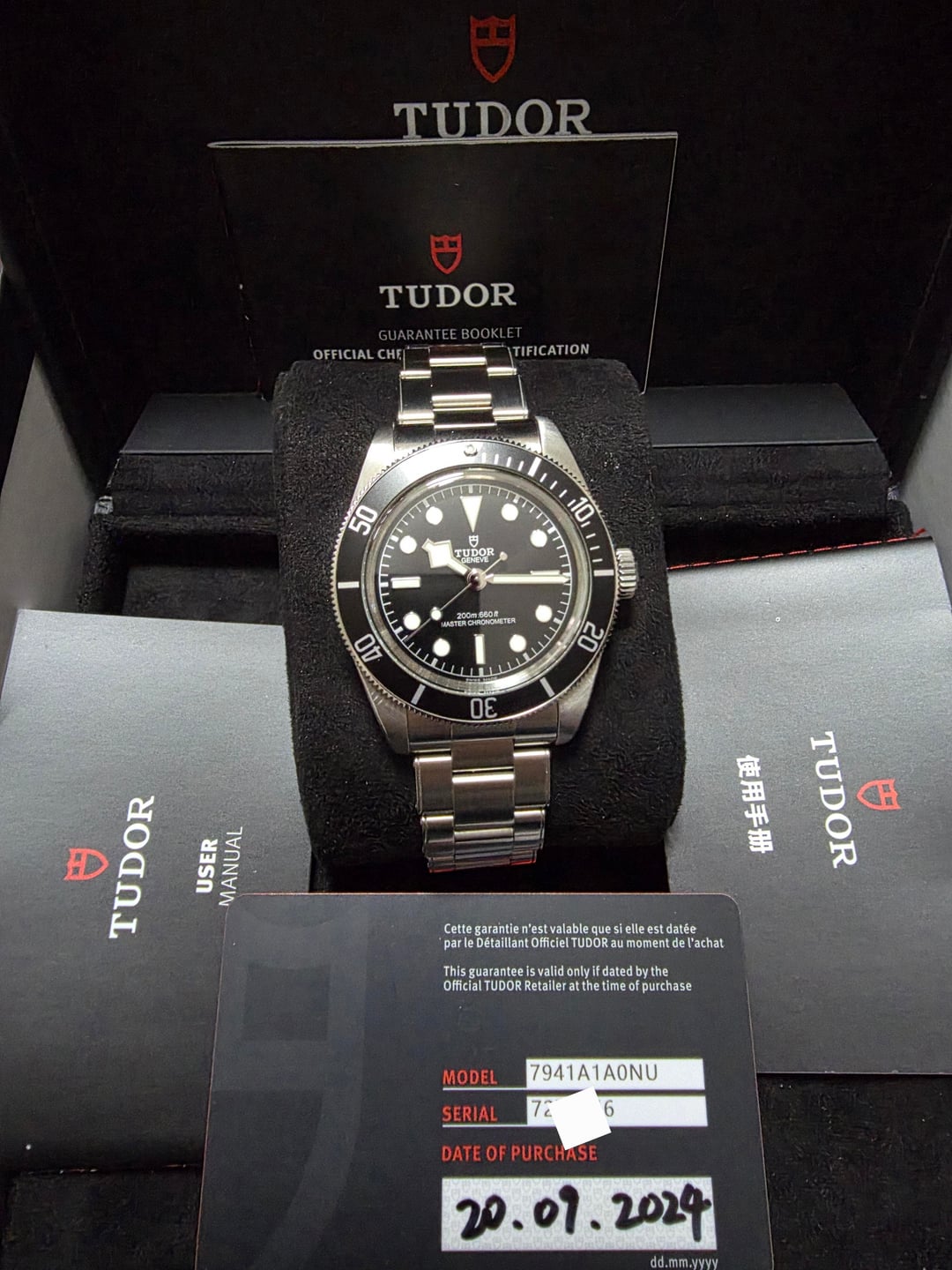 Up for sale is a 2024 Tudor Black Bay Monochrome M7941A1A0NU 41mm Full Set. It is fully functional and is running at -3 seconds per day. It comes with a warranty card dated 2024, Tudor inner and outer boxes, and three Tudor booklets. It is still under warranty (09/2024 - 09/2029). ***The authenticity is 100% guaranteed – the watch has been thoroughly inspected and authenticated prior to listing. Feel free to check out my website*** **Tonneau Atelier** ***in my profile.*** Price: $3499. Payment via PayPal or Wise is preferred. No trades please! Watch is in Chongqing (known as the Cyberpunk City), China. **I will pay the customs duties or tariffs for buyers located in United States. Watches will be shipped via FedEx, which delivers to your doorstep in just four days.** Worldwide shipping and I am willing to ship this watch anywhere with buyers paying for the shipping. If you really love this watch and pay fast, I will offer free shipping! Feel free to ask for any custom timestamps or videos, I am happy to send them. Please don't hesitate to ask me any questions, thank you! Timestamp: [https://imgur.com/a/QZ9Z5Aa](https://imgur.com/a/QZ9Z5Aa)