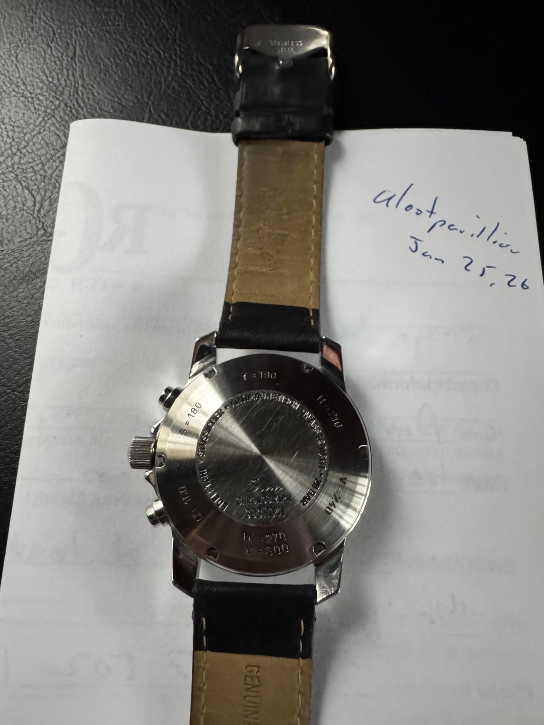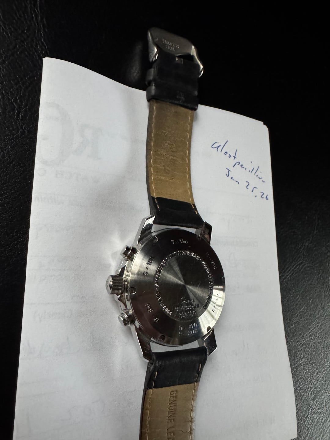 Watch: Sinn 303 Autobahn Chronograph * Reference Number: 303.1041 * Condition: I bought this as a project but I’ve decided to go another direction. The watch needs a new crown/tube as it won’t reliably set the time. The watch is otherwise in good mechanical condition andkeeps time within 1 minute per day, with all chronograph functions working correctly. Cosmetically, the watch is in good preowned condition. * Wrist Size: Up to 7.75in on aftermarket leather strap * Case Size: 40mm with 20mm lugs * Notes/Extras: None * Price: $799 shipped insured