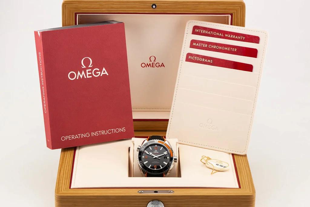 Up for sale is a brand new Omega Planet Ocean 8900 43.5mm Black with Orange accents on Black & Orange Rubber Strap, reference # 215.32.44.21.01.001 It comes complete with all boxes, papers, booklets, hang tag and Omega Warranty Card dated February 2025.