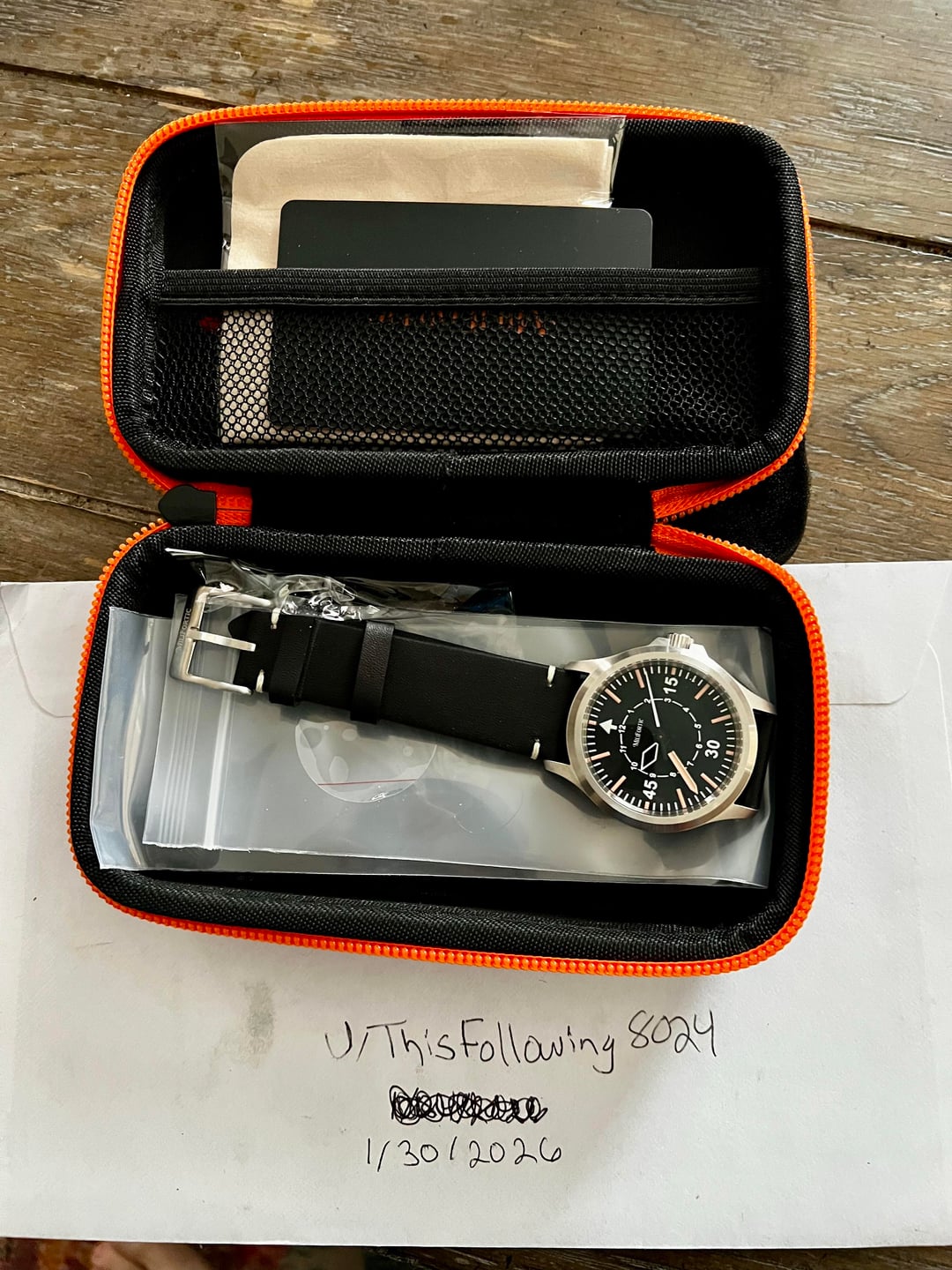 Up for sale is a Milifortic M111 (Sinn b-uhr homage) w/ NH38 movement. I only removed the stickers and haven’t even placed it on my wrist. Includes: • Watch on black leather strap • warranty card, booklet, watch case, cleaning cloth Price: $130 Shipped Payment: PayPal F&F preferred; PayPal G&S accepted if buyer covers fees; Venmo also accepted Shipping: USPS Priority Flat Rate (tracking included; insurance optional at buyer’s cost) Location: CONUS- North Carolina Trades: No trades Happy to send additional pictures or video if needed. Thanks for looking!