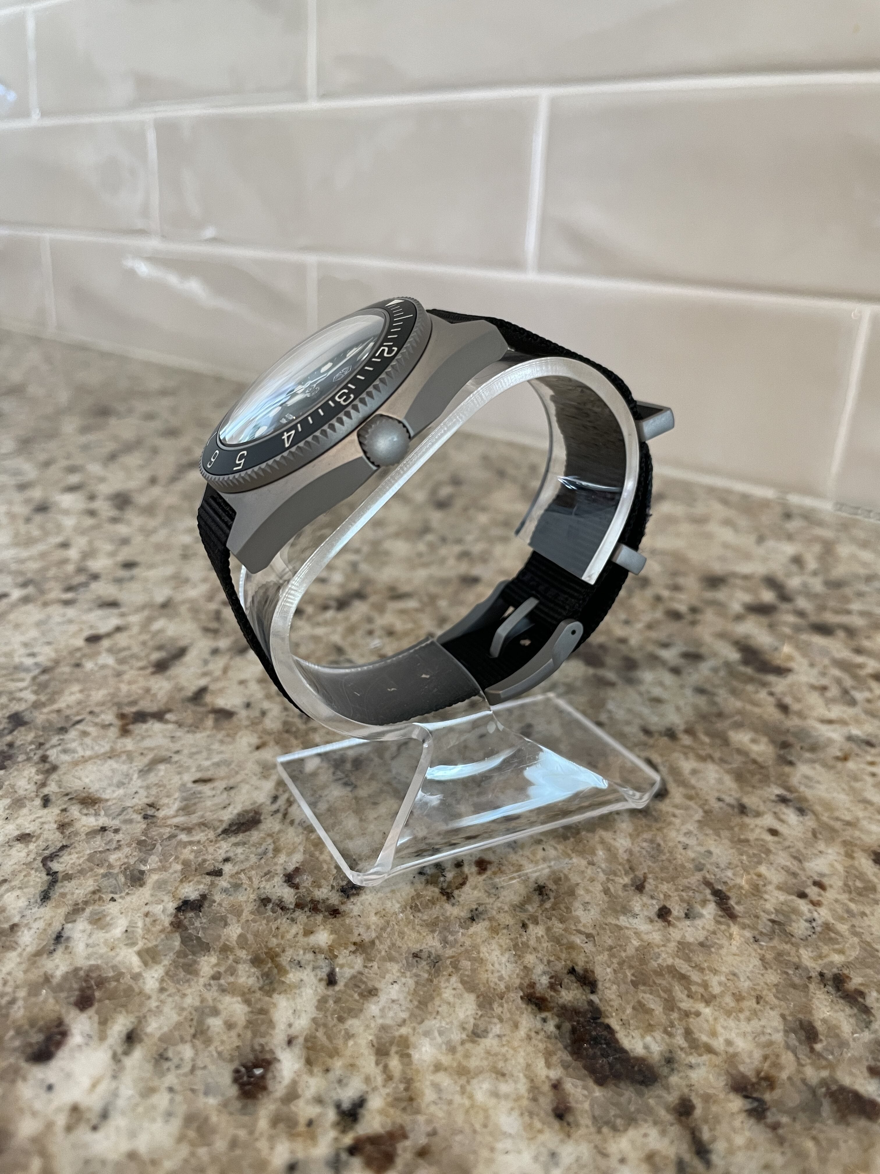 Overall there’s light wear on the case and bracelet. Crystal and bezel are absolutely perfect. The bezel lines up perfectly. I have trimmed the NATO to fit my 7" wrist with minimal excess. Please take that into account before purchasing.