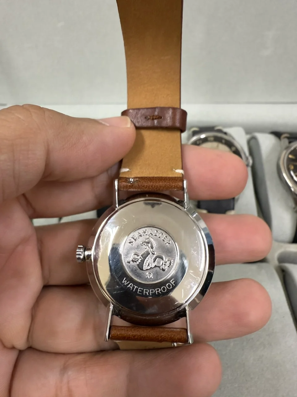 - Case: The diameter is 34.5mm without the crown. The case in good condition, no obvious dings or dents. Original Omega signed crown.