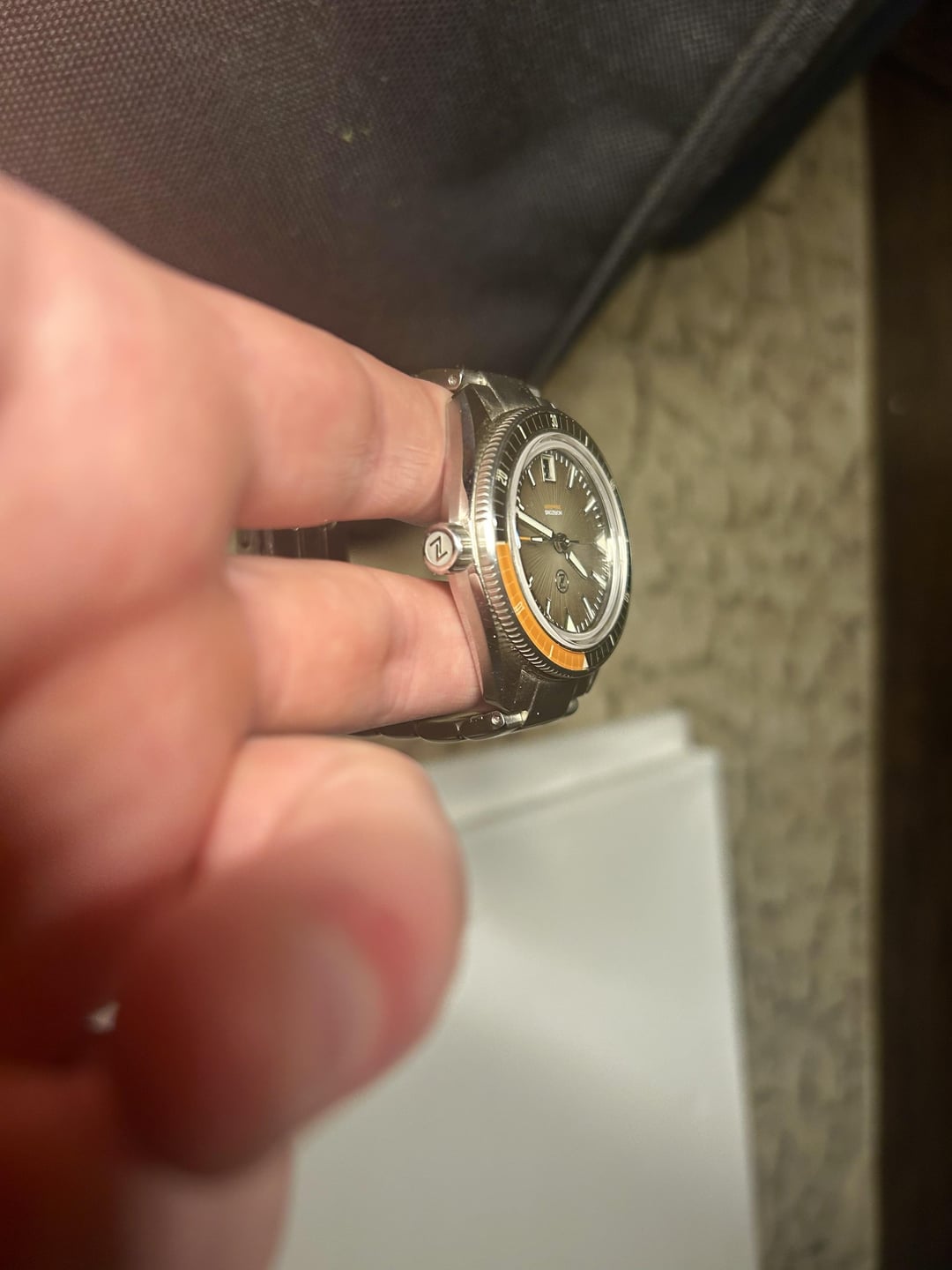 Case: 39mm diameter, 10mm thick without crystal Water Resistance: 200m Beautiful watch, has a few blemishes on the side(not a dent), willing to negotiate
