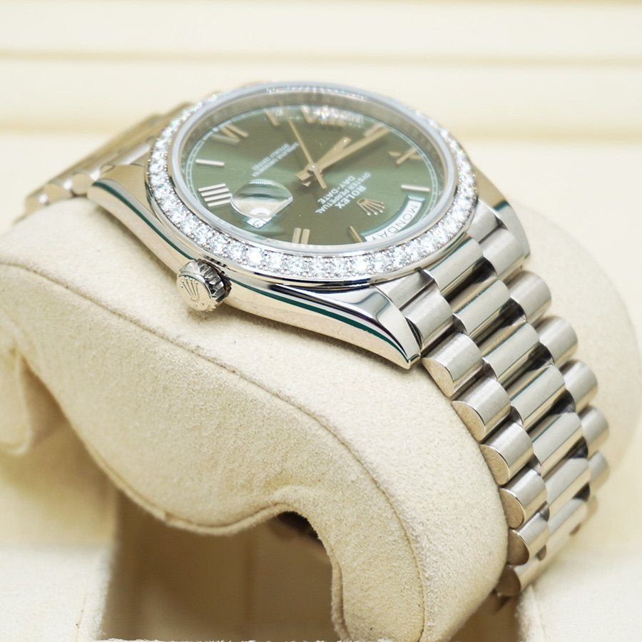 FS: Rolex Day-Date 40 Presidential 228349RBR Diamond Bezel Olive Green Dial