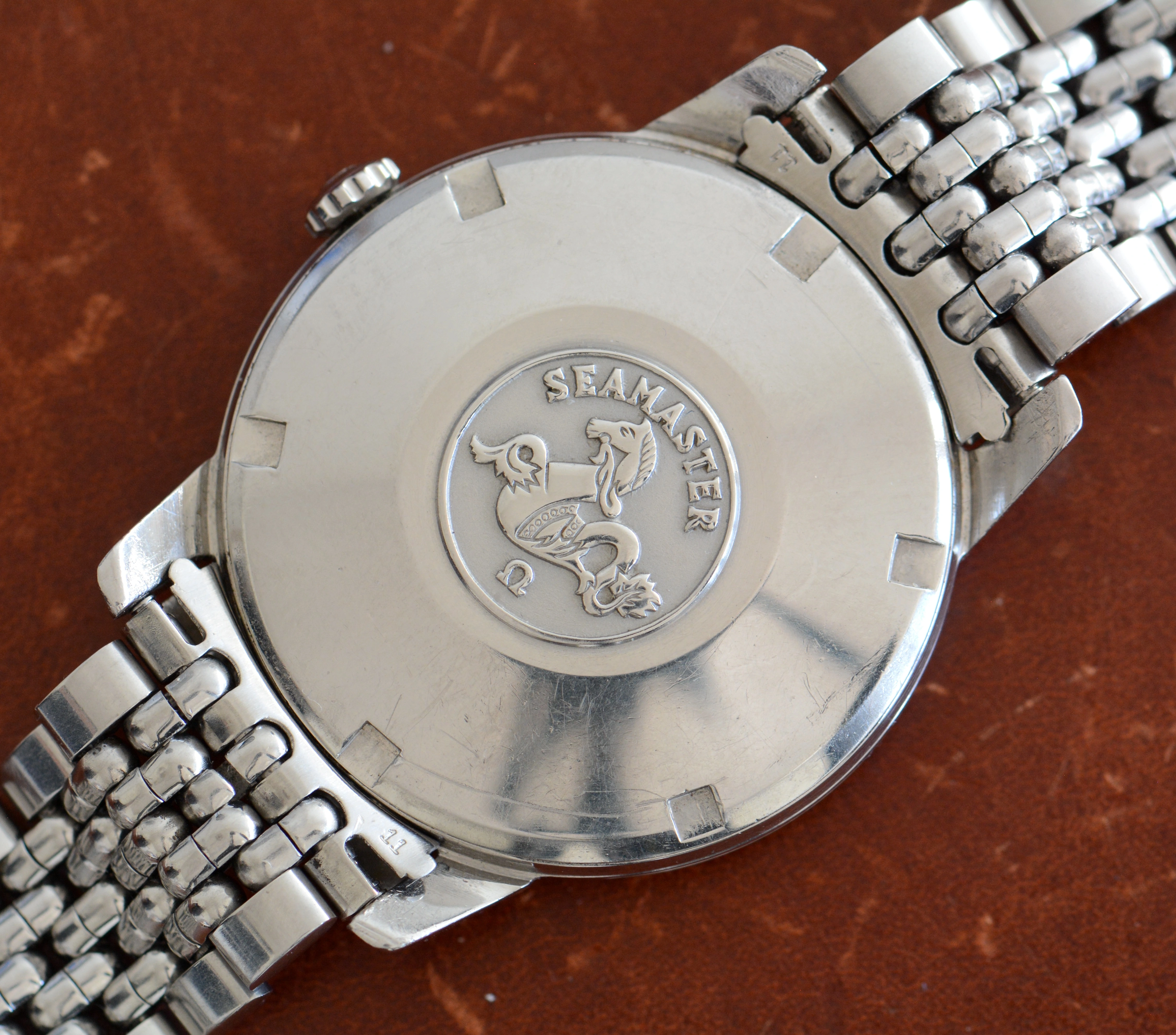 I'm a fan of larger or "Jumbo" Seamasters. As I bought three last year, I decided let one of them go. For your consideration is a nice steel Omega Seamaster ref. 165.011 with an uncommon dial, i.e. with a circular finishing rather than the more common sunburst or vertical finishing. It is complemented by an original Omega BoR bracelet.