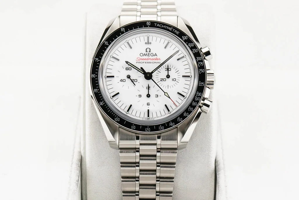Up for sale is an excellent condition Omega Speedmaster Moonwatch Professional White Dial Sapphire on Bracelet, reference # 310.30.42.50.04.001 It comes with all boxes, papers, booklets, and Omega Warranty Card dated September 2024.