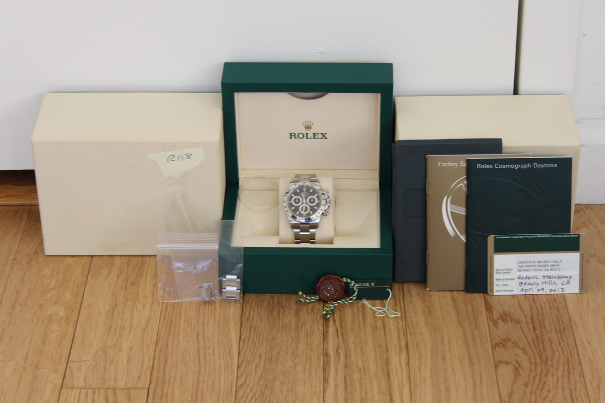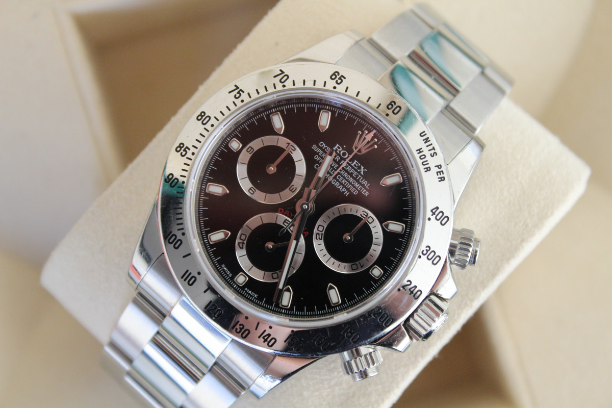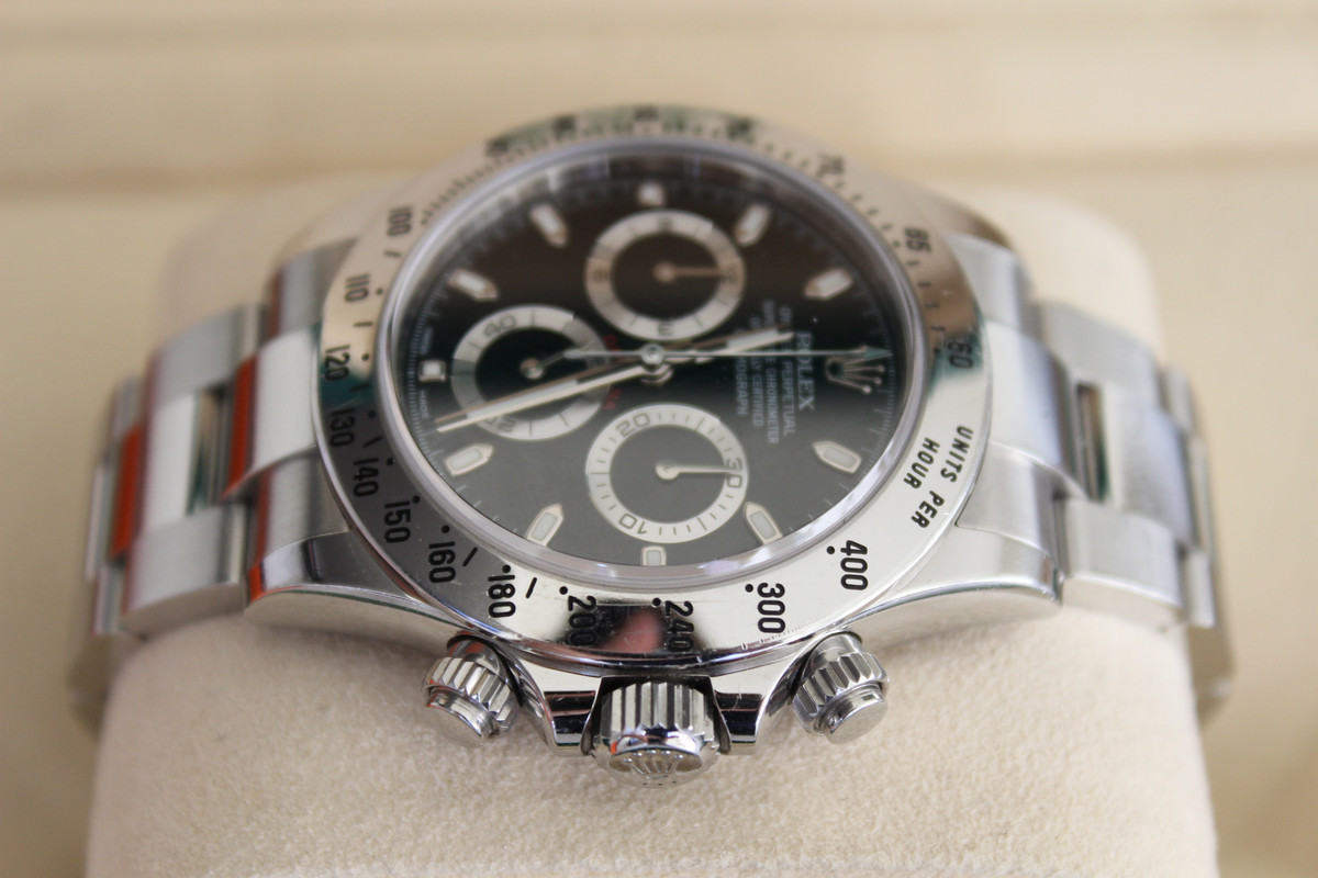 | Rolex Daytona 116520 Cosmograph Steel Oyster & Rubber B Black Dial Watch Papers diamonds-east-international (1345) |