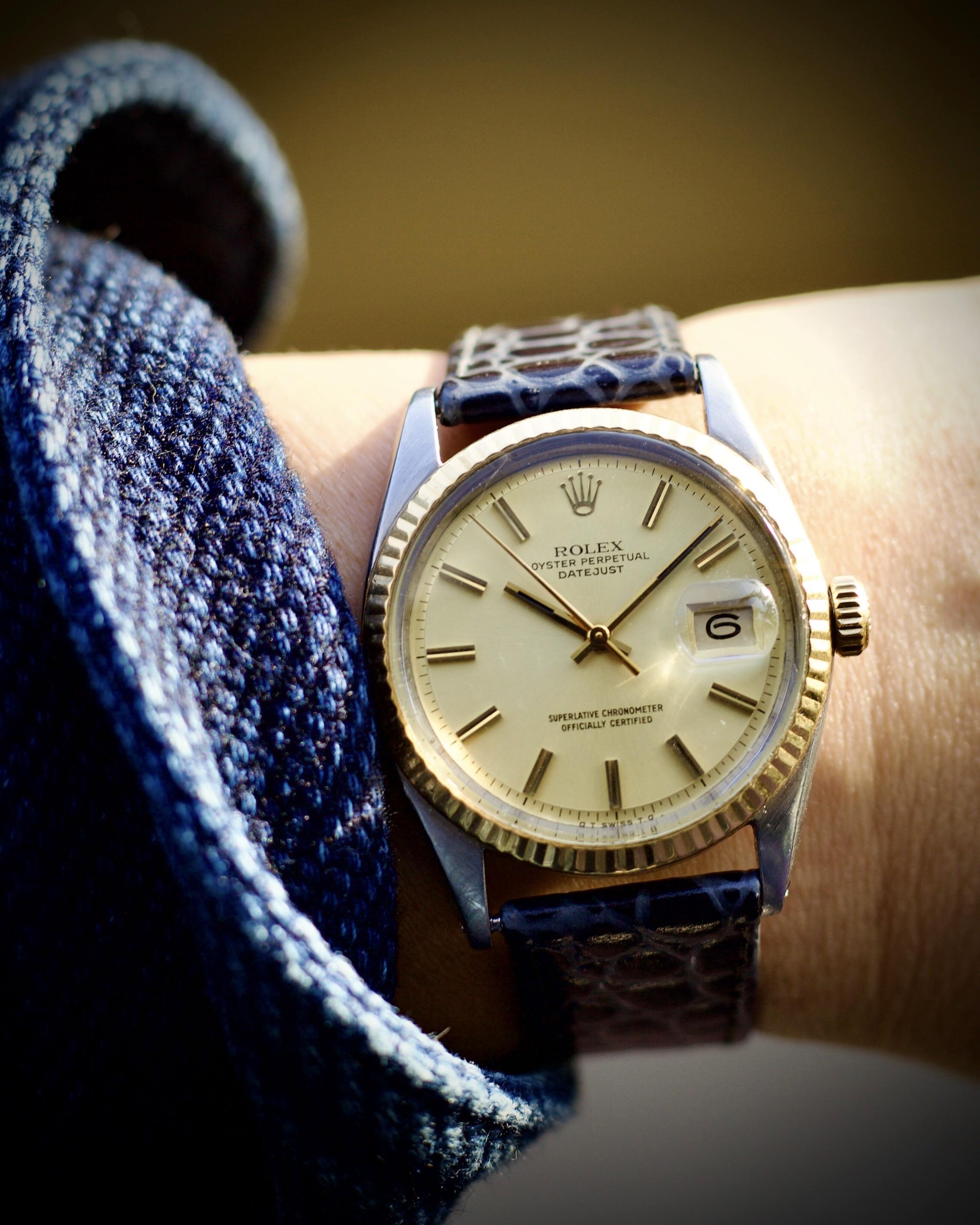 Rolex Datejust ref. 1601 circa 1973 Sigma Dial Oozing 1970s aura, this crispy two-tone DJ is an excellent example with pie-pan Sigma dial—gold hands and markers as well as “open” 6 and 9 font in datewheel. While no service history on this one, the automatic non-quickset movement is showing healthy timegrapher data. Neat note: this has a “perfect crown” position with coronet facing up when full screwed down. Timegrapher, videos and album: https://imgur.com/a/rvYZEju • classic 36mm case and 20mm strap • no box or papers • mark on crystal near 11 and ding on underside of lug—a new crystal an be negotiated • will consider trade for Rolex, Tudor and Omega sports steel models * All sales final unless the watch is misrepresented or lost in transit (always fully insured) * Link to [feedback here](https://www.reddit.com/r/WatchExchangeFeedback/search?q=soycowboy&restrict_sr=1&sort=new) & [watchcharts here](https://watchcharts.com/repcheck/user/soycowboy?source=reddit&type=feedback) * Asking a *negotiable* **💲3930** via bank wire, Zelle, venmo, or possibly PayPal Friends & Family with super strong references or if I know you. Price includes fully insured Fedex shipping in the USA— hand delivery in most of the Los Angeles or Orange County areas with drinks or coffee on me ;). - 🪼Cheers, Stephen