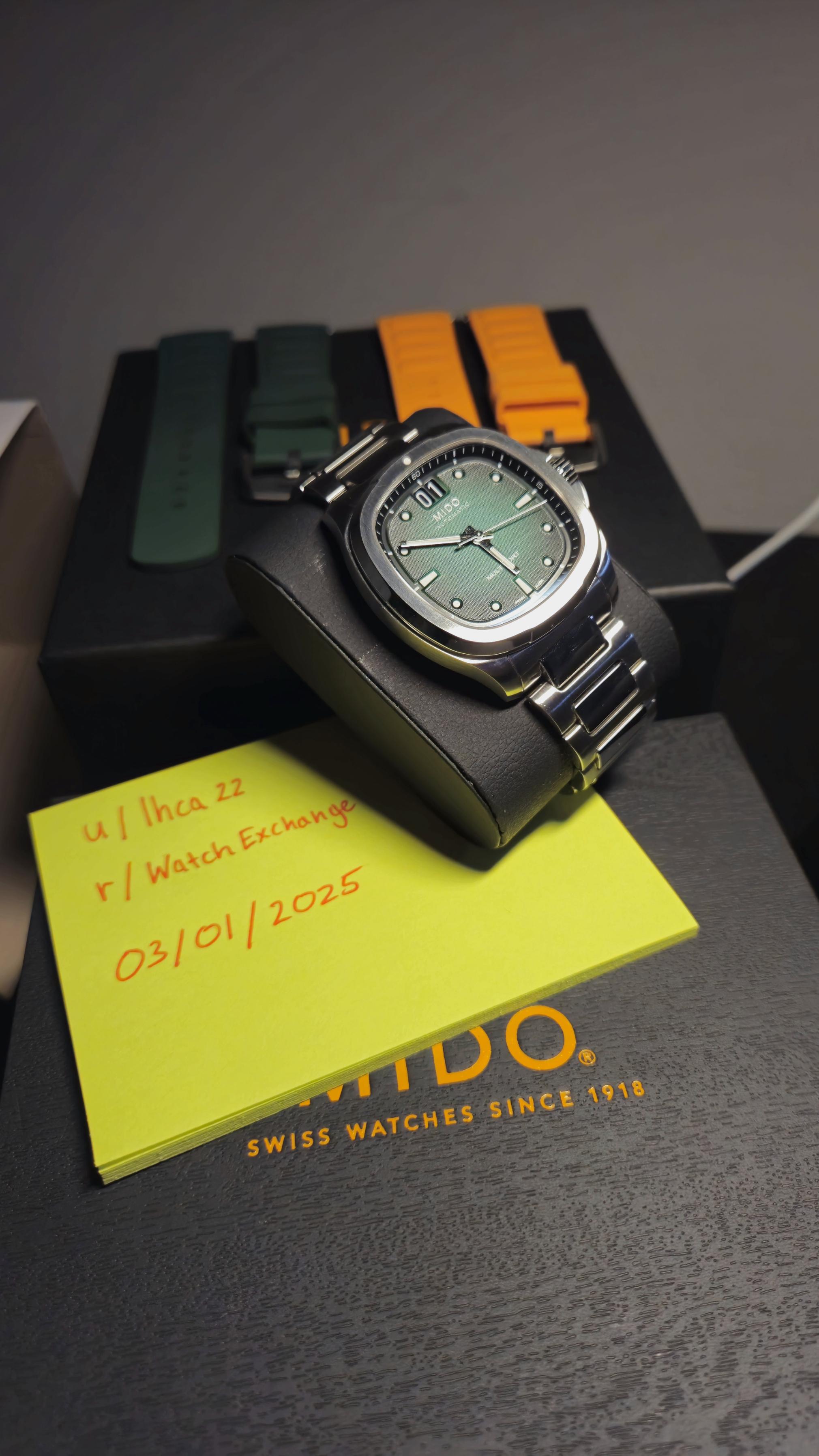 [WTS] Mido Multifort TV Big Date - Green Dial, full kit + extra straps
