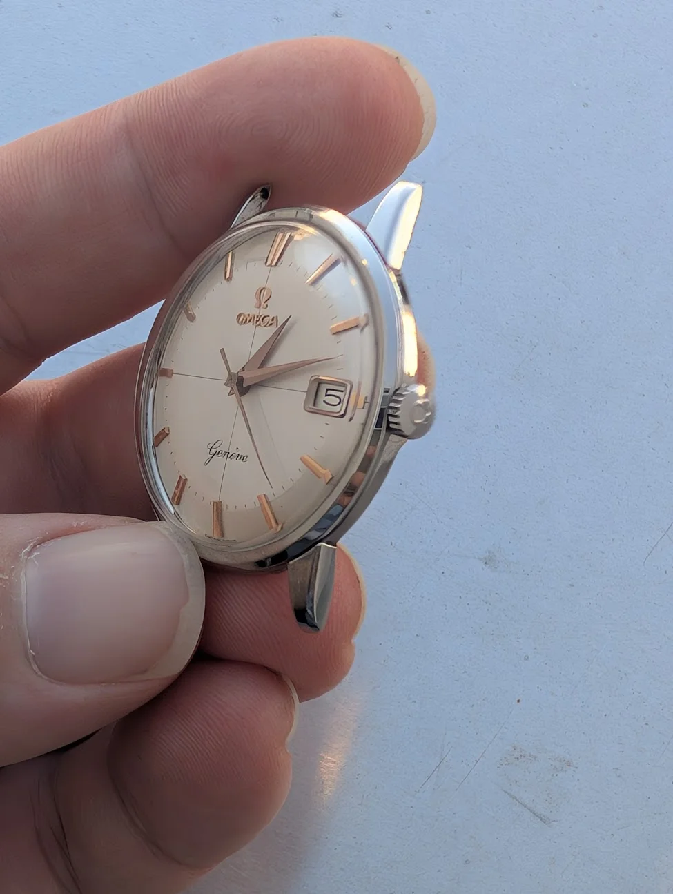 1960 steel Omega cursive Geneve 14724 ref w/ Rose Gold indices