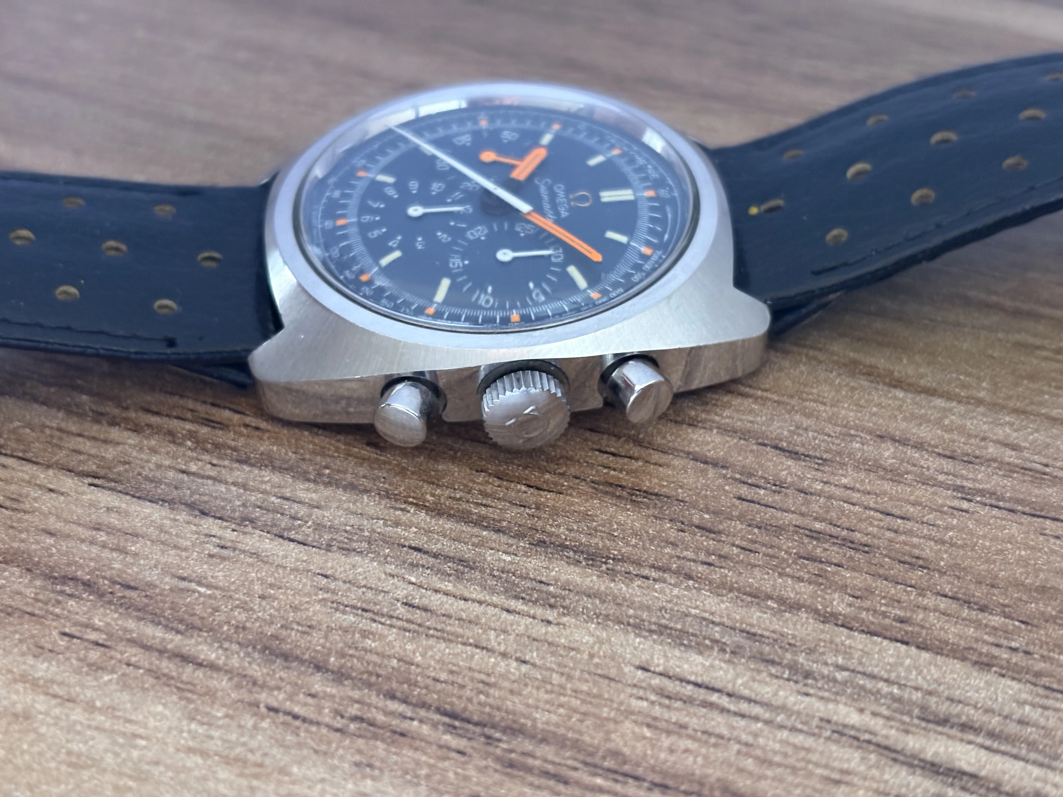 I bought a set of a couple of 145.029 in 2021 in almost NOS condition, this one came with an original corfam strap that I rarely used. The current watch comes with it and its original buckle.
