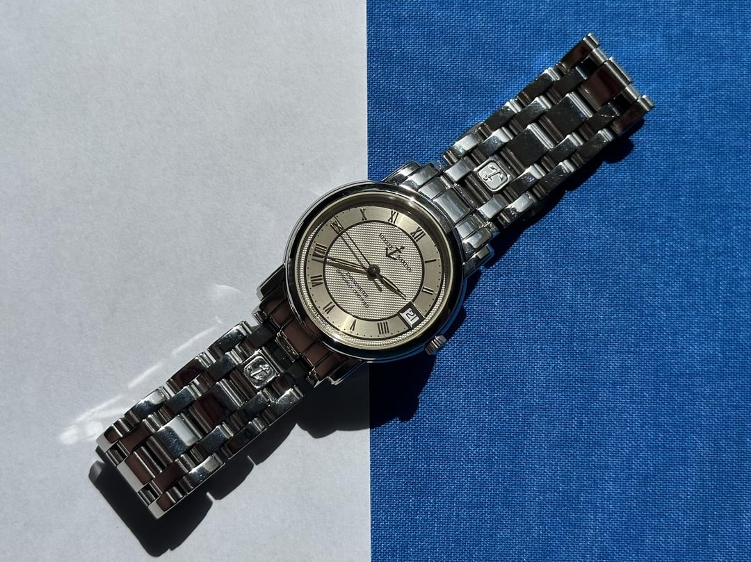Up for sale is a Ulysse Nardin San Marco, reference 133-88, dating to the 1990s. The standout feature of this watch is its dial. The dial contains several different finishing techniques, including a clou de Paris background intersected by a satin finished ring with applied Roman numeral indices. It is a very beautiful dial reminiscent of Breguet. The watch measures in at 33mm in diameter, with 8mm thickness. In my opinion, it nicely sits both in the dress watch and everyday wear categories. This watch features an ETA 2892-A2 automatic movement. The watch is running at about -19 seconds per day and would likely benefit from a service, though it is wearable as is. Because it is an ETA movement, any good watchmaker should be able to handle the job. The watch comes on it's original bracelet, which should fit approximately a 6.75" wrist. **Price:** $1,300 **Timestamp:** in photos **Videos:** I can send a video of the watch through my instagram, @WarmDials **Payment and Shipping:** to be agreed upon by the buyer and myself, taking the buyer's purchase history into consideration. I'm a private collector located in the United States and frequent user in this community. I have bought and sold often, and I'm happy to answer any questions you may have / provide more photos or a video. You can find me on instagram at @WarmDials. Don't hesitate to reach out if you have any questions or want to chat