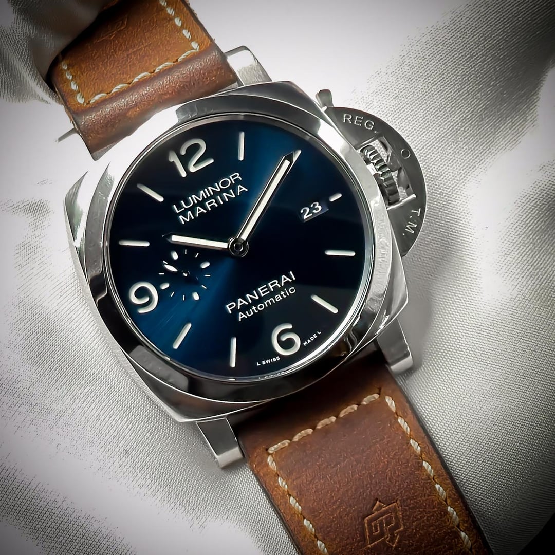 PANERAI LUMINOR MARINA * Reference: PAM 01313 * Condition: Very Good w/ some micro scratches / Clean Crystal & Dial * Case/Dial: 44mm Brushed Stainless Steel / Blue Dial * Materials: Polished Stainless Bezel / Sapphire Crystal / Brushed Stainless Caseback * Movement: P. 9010 Calibre Automatic / 3 Day Power Reserve * Bracelet/Strap: Brown Leather Strap w/ Brushed Steel Tang Buckle * Included: * 👉Wood Box * 👉Instruction Booklet * 👉International Warranty Card (Valid till 10/24/28) * 👉Original Price Tag * 👉Stickers * 👉Tools * We use a macro lens for professional photography so some dust/particles may be seen * References available, deal in confidence * You are purchasing the exact watch as seen in the pictures * Watch has been tested on a timegrapher and runs very well * Cross-posted, please DM for availability * Happy to jump on a call or Facetime * Free CONUS shipping fully insured to closest Fedex from Buffalo, NY * Payment: Bank wire / PP F&F / CC (+4% w/ ref) * Follow us on IG: @ Punch Luxe