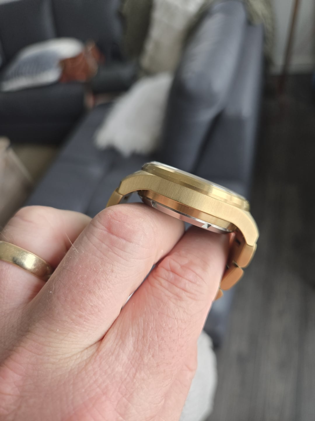 This watch is just plain fun! With a Super Compressor case, a brassy-gold finish and lume-infused carbon dial, this watch will get noticed! Not only are the usual suspects amply lumed, but the carbon dial absolutely POPS when the lights go off!!! This sold out Limited Edition was only 1 of 200 made (#179), so you won’t find many, if any, in the wild. Comes as a complete kit and in supreme condition. Case Size (mm):42.0mm x 15.0mm x 50.0mm w. 20mm lug width Water Resistance: 18 ATM (600 FT) Asking $325 shipped anywhere in CONUS. Payment via PP (all fees are the responsibility of the buyer) or EMT for my fellow Canucks. Watch is located in Canada. Thanks for looking!