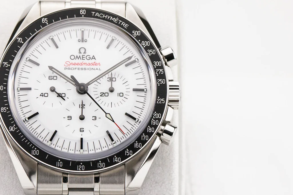 Up for sale is an excellent condition Omega Speedmaster Moonwatch Professional White Dial Sapphire on Bracelet, reference # 310.30.42.50.04.001 It comes with everything shown - boxes, papers, and Omega Warranty Card dated October 2024.