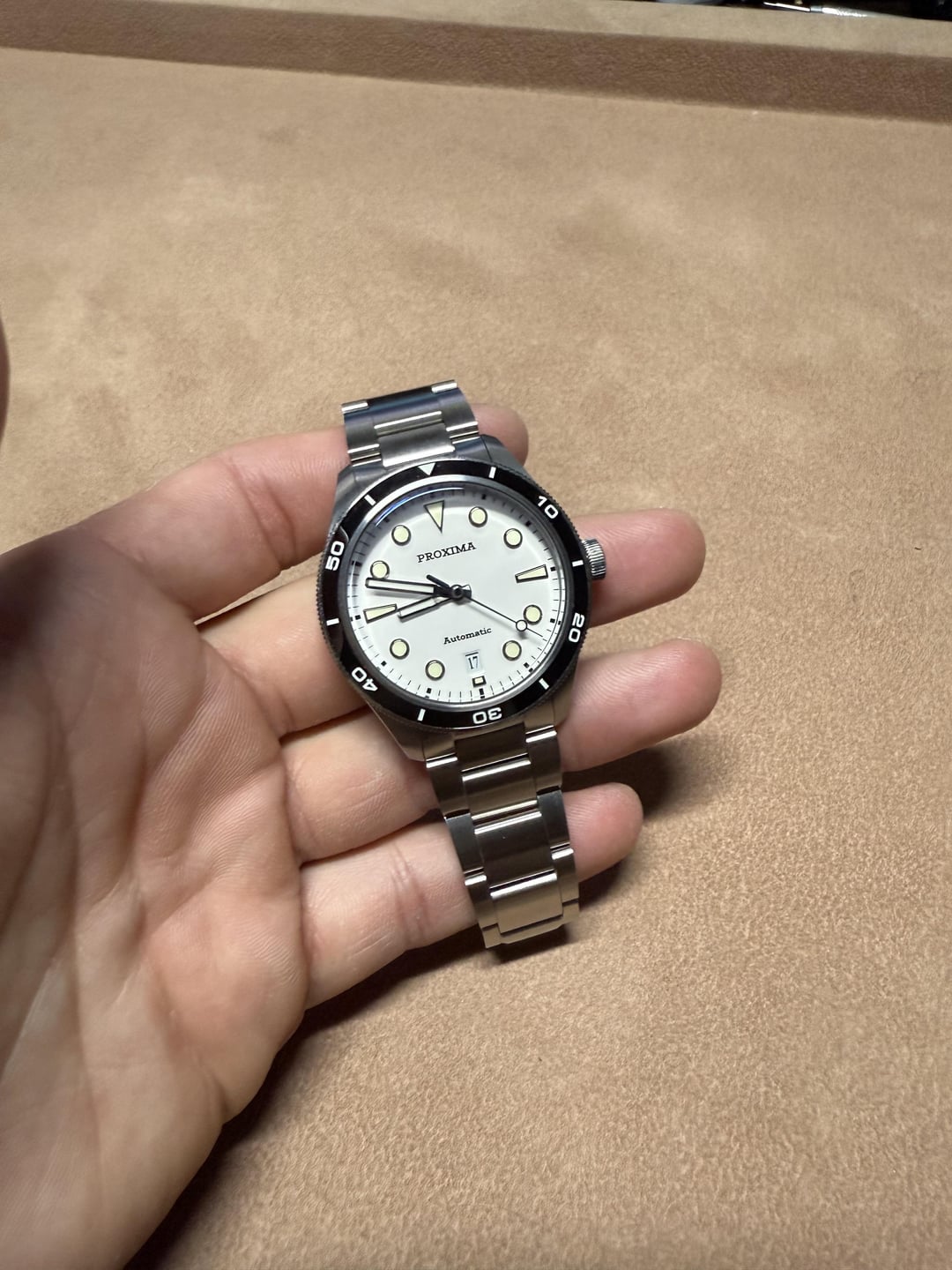 Timestamp: https://imgur.com/a/7VzIbyc For sale is my Proxima PX1697 diver. Asking $115 (I cover shipping). Included with sale: * Watch on steel bracelet * Extra links (4) * Box / papers / warranty card * Bracelet tool Condition: Very good; watch was rarely worn. Minor surface level scratches, hardly visible as the watch is mostly brushed. See photos. Comments: Well made watch with good tolerances and sharp finishing. Believe it is a Christopher Ward homage with the “light catcher” case. Specs: * Diameter: 39mm * Thickness: 11.5mm * Movement: PT5000 (SW200 clone) * WR: 200m Asking $115 shipped to CONUS. I paid ~$250. Zelle preferred but will accept PayPal F&F and Venmo if you have transactions. Transaction is not complete until funds are received. I reserve the right to refuse sale to anyone at my discretion. First person to send the funds gets the watch.