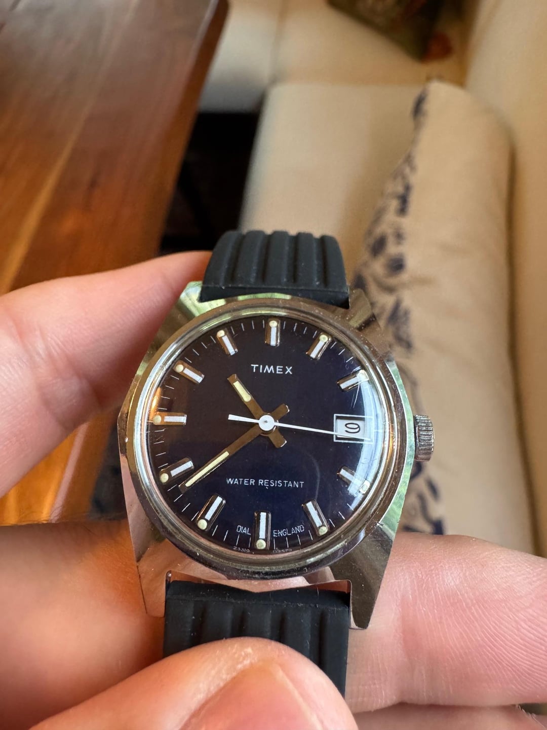 ![Thumbnail [WTS] Vintage Timex Marlin hand wind with blue Made in England sunburst dial + extra strap - $50 5](https://cdn-cf.watchpatrol.net/120x120/img/full/dbad861d64d702efc9d8413515d2ebd62f01932b.jpg)