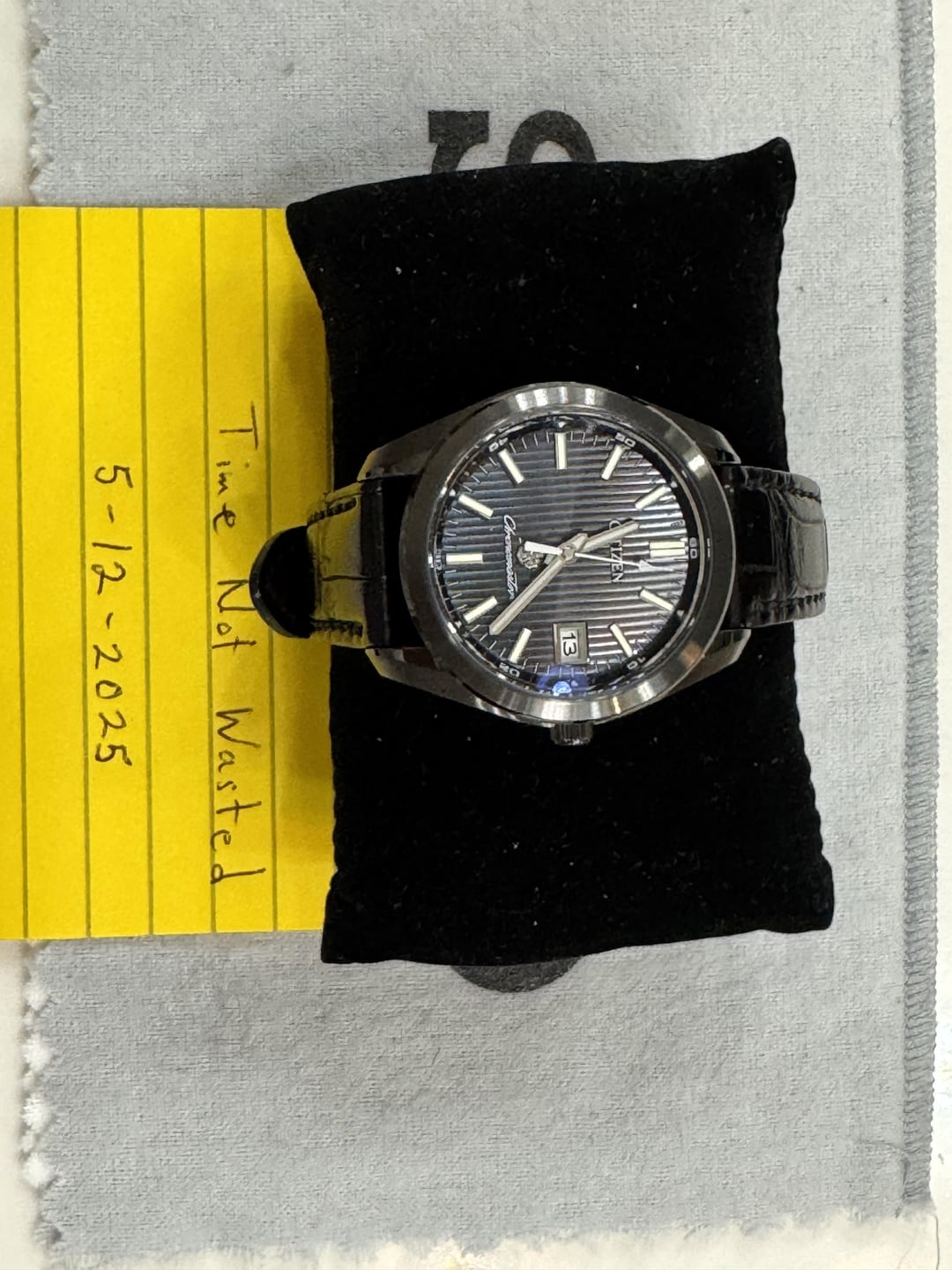 It’s the Citizen Black Eagle HAQ AQ4054-01E released in 2019 in a limited run of 300 pieces and sized a perfect 39mm. This awesome piece has a black textured dial with the legendary Caliber A060 with Black DLC coated stainless steel case. Powered by a solar high accuracy quartz (HAQ) guaranteed to +/- 5 seconds a year! An accuracy equal to highest Grand Seiko 9F movements. A true marvel in design and engineering. Box, but no manual or warranty card. However, PDF manual is available online for free. Just a handful of hairline scratches on the case and normal wear on strap. Specs are as follows: * Case width: 39mm (w/o crown) * Condition: Pre-owned and Excellent * Limited to 300 pieces worldwide * Black DLC coated Stainless Steel * Lug to lug length: 45mm * Lug spacing: 19mm * Thickness: 11.6 mm * Sapphire crystal with AR coating * Movement: A060 HAQ & +/-5 seconds a year * WR rating: 100m * Box & Timepiece only * PDF Manual: https://www.citizenwatch-global.com/support/pdf/a010/e.pdf * No trades, Price is firm * Free Shipping via USPS Priority within CONUS PRICED to SELL: $1,350 via Venmo or Zelle Buy with confidence! Currently, 136 positive transactions on Reddit and counting. Happy to FaceTime with Citizen in hand if needed. Thumbs up appreciated if you like the post.