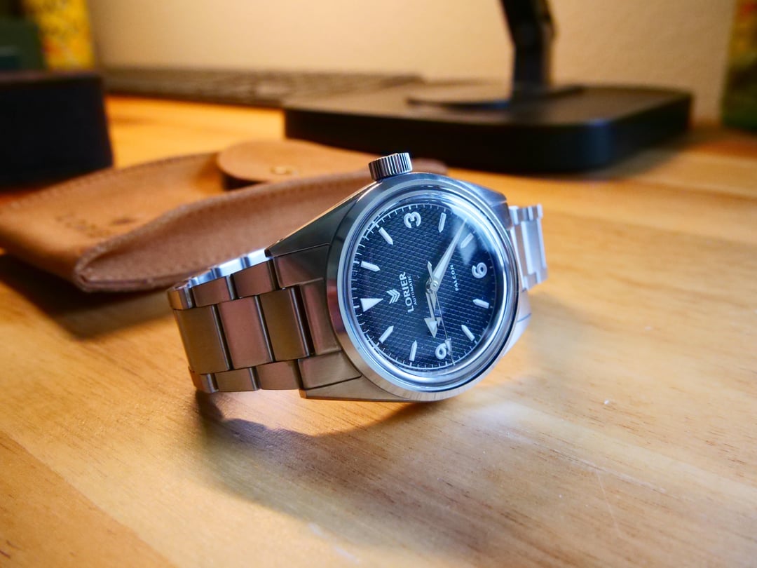 For sale is the Lorier Falcon SIII. The crystal in in great shape and the bracelet/clasp has some wear and tear shown in pictures. Included is the original box, leather carrying case, all links, and paperwork. I’ve absolutely loved the way this watch fits/looks and have been nothing but impressed from Lorier as a manufacturer and brand. Asking: $350 (Via PayPal, Zelle, or Venmo) Product Link: [Lorier Falcon](https://www.lorierwatches.com/products/falcon-siii) Feel free to reach out with any questions!