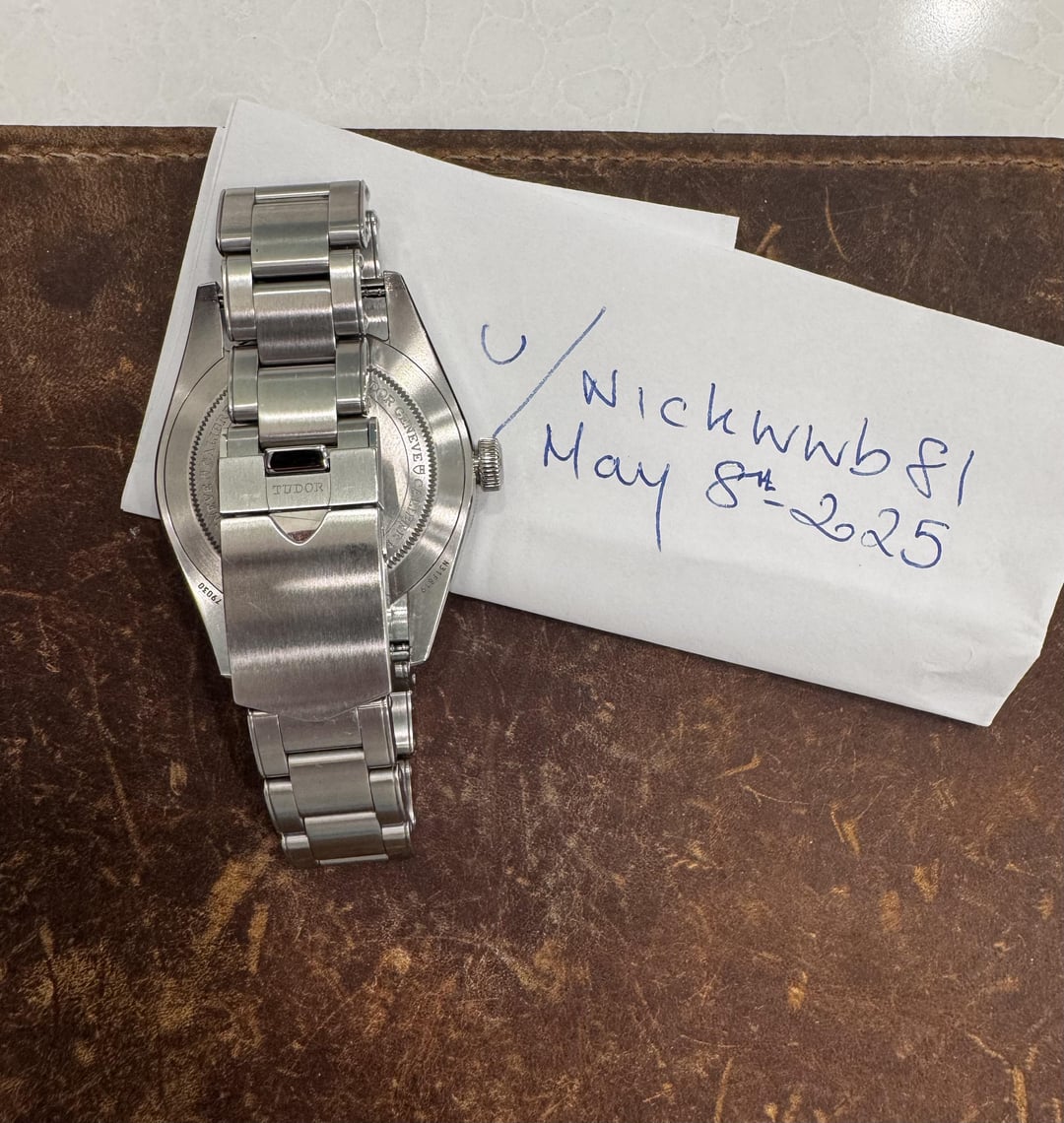 Hi everyone, *Reduced price* I priced too high initially, was reluctant to take a huge hit on such a new and great watch. Selling a truly wonderful watch: Tudor Black Bay 58 Navy Blue, full set plus extra OEM strap. Minimal wear. Four weeks old and has not been worn for the last week since I decided to sell. Purchased this when I had given up all hope of ever making it to the front of the line for a Rolex, of course then get the call for my grail and wedding anniversary present from my wife. Includes a second OEM strap (fabric) ($175), inner and outer boxes, papers, hang tag, and all links. Basically the full 5-year warranty remains (April 17, 2030). As you see from the pics, included receipt from AD showing what (and when) I paid including taxes. Price (negotiable): $3,299 shipped (CONUS) or Best Offer. Shipping: USPS priority mail (unless you choose an alternative method). Payment: Zelle, Venmo, PayPal (any fees are at buyer’s expense). Trades: no thank you. Ask any questions, happy to send more pics. Check out my other transactions (recently sold a 2025 Rolex Explorer 36 below retail). Please comment here before sending a direct chat message. Feeling very lucky, and as much as I would love to keep this it feels somewhere between selfish and foolish, as I don’t think it will get the wrist time it fully deserves. My loss is your gain, so to speak. Looking for a good home for it. Kind regards, Nick