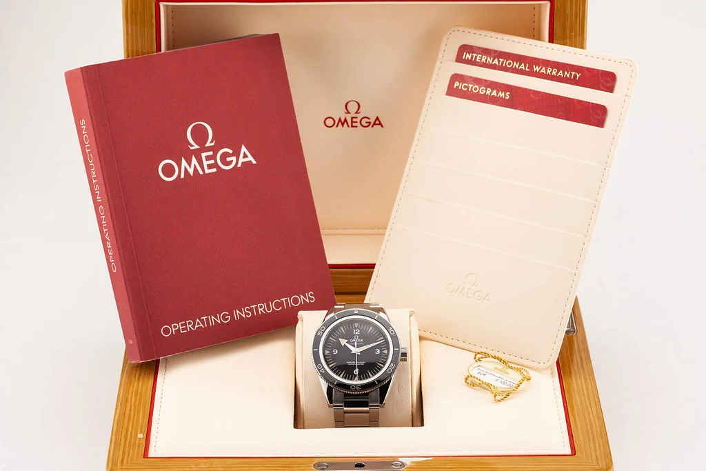 Up for sale is an excellent condition Omega Seamaster 300 Heritage 41mm Liquidmetal Master Co-Axial, reference # 233.30.41.21.01.001. It comes complete with all boxes, papers, booklet, hang tag, and Omega Warranty Card dated May 2021.