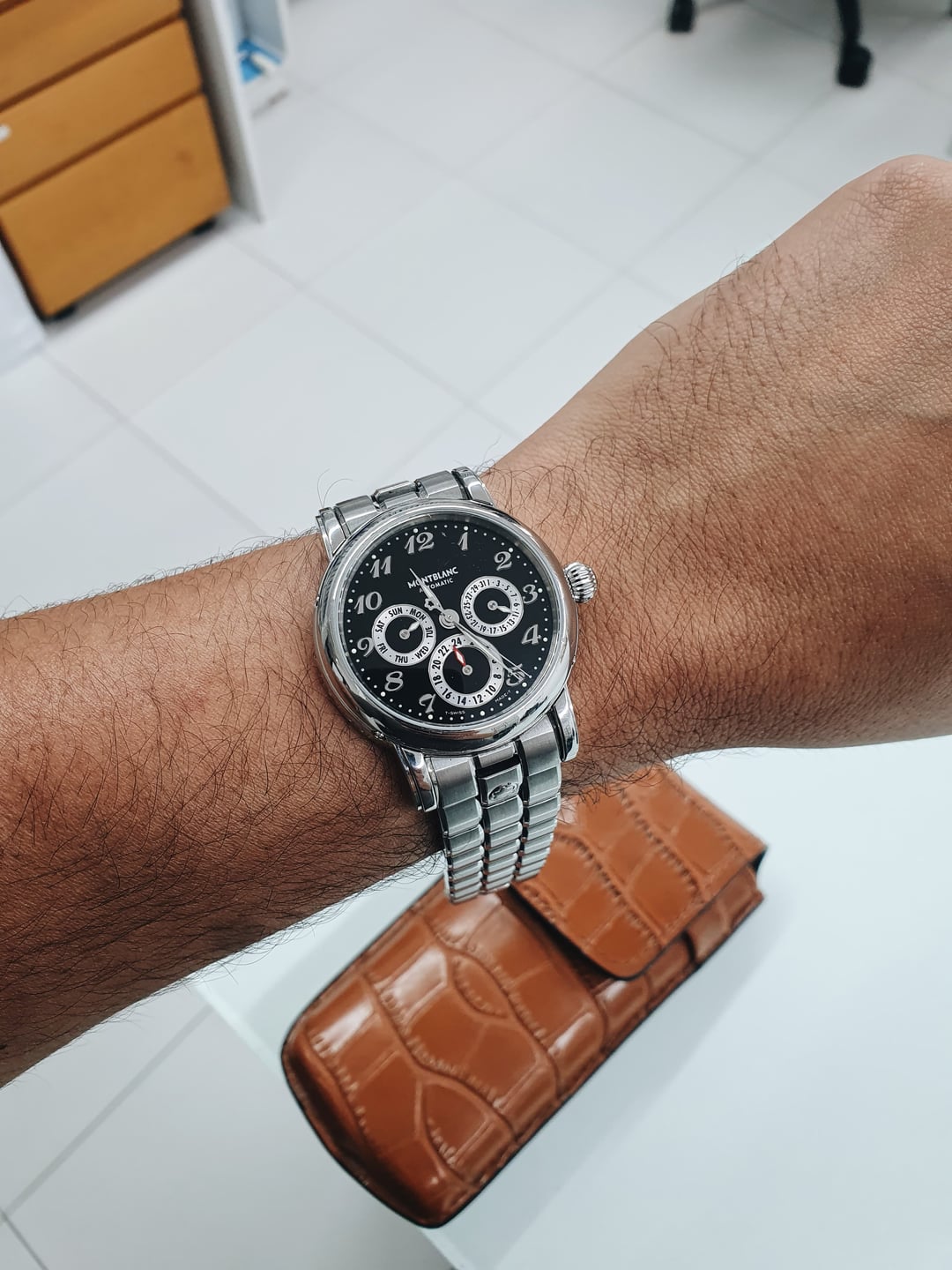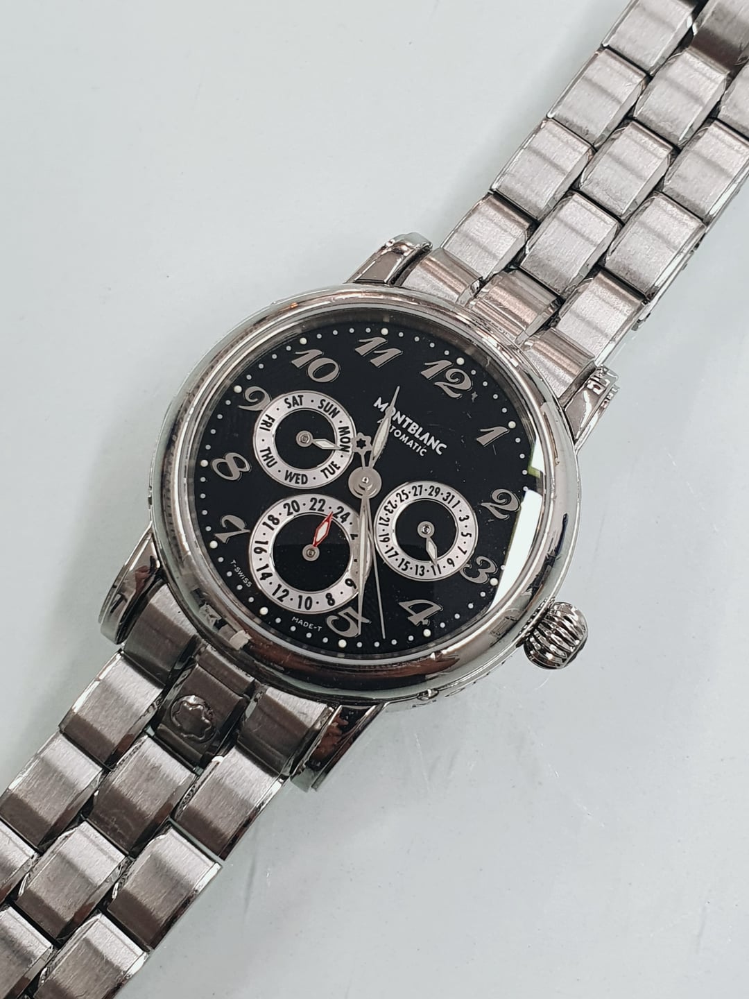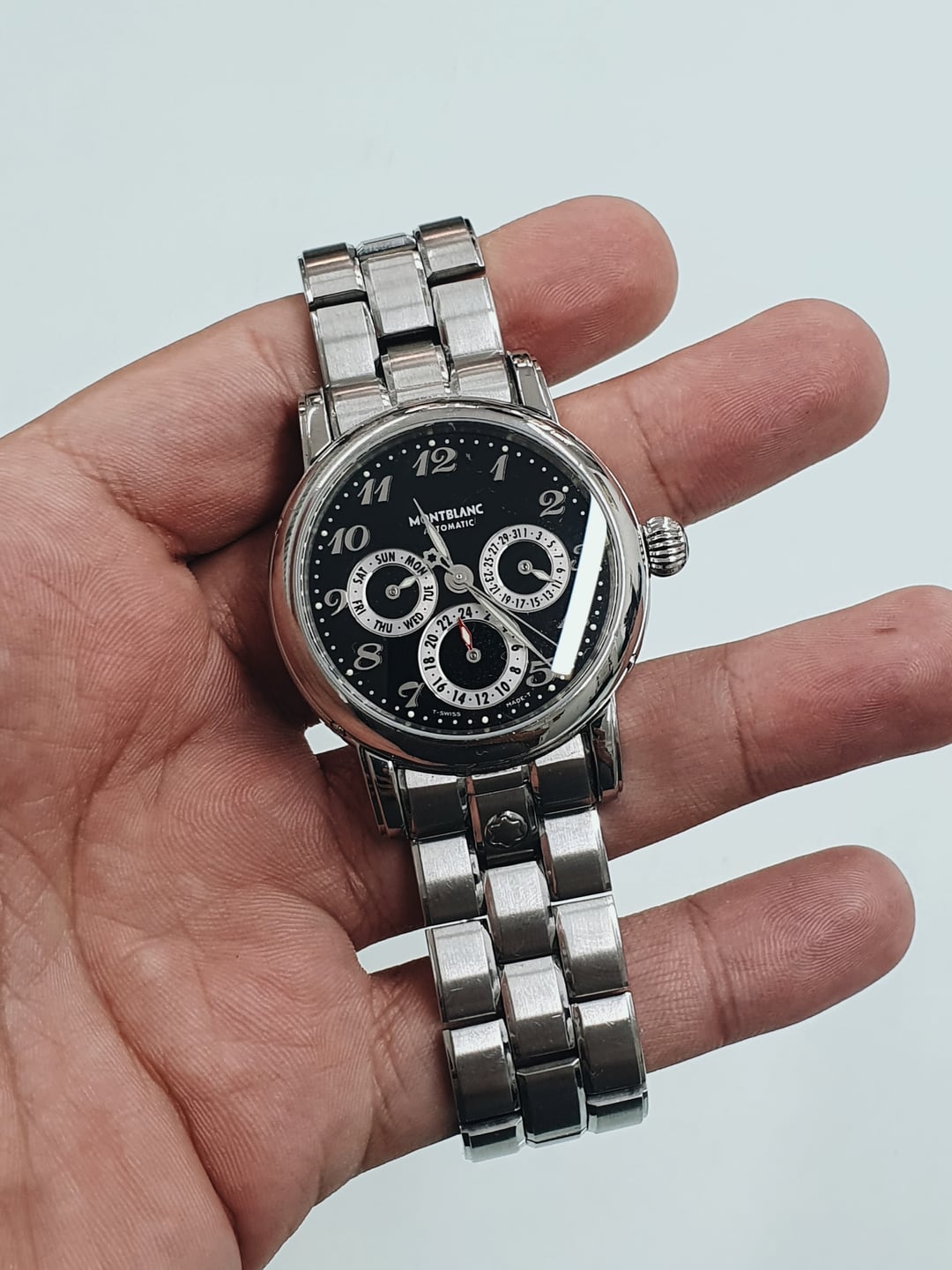 In my opinion, this is easily one of the best Montblanc pieces when it comes to value for money. You get a GMT sundial, date, and day for less than $2,000 – not bad. Plus, it comes with the original stainless steel bracelet, which isn’t something you see too often with these. **Condition:** Good. The case has a ton of hairline scratches, but overall it’s in good condition. The dial is pristine. The bracelet will fit a wrist of up to 7.25 inches. See detailed photos for full condition and clarity. **Case Size:** 38 x 46.7 mm stainless steel case with a thickness of 13.1mm and a lug width of 19mm. **Crystal:** Sapphire **Movement:** Montblanc MB24.01, based on the ETA 2892 with a dual time module. Automatic with a beat rate of 28,880 bph and a power reserve of 42 hours. I got it from a very skilled watchmaker, but I’m unsure of its service history. Everything works perfectly. **Price:** Asking $1,500. Please add $100 for worldwide shipping. Payment methods include Wise, ACH transfer, Revolut, Bitcoin (On-Chain or Lightning), or PayPal G&S for buyers with solid references. Add +6% for currency conversion fees on the latter. I’m located in Portugal, but worldwide shipping isn’t an issue. Established seller with over 220 transactions – buy with confidence! Make sure to follow me on Instagram (@daily.worn) to check out the newest additions. Happy to answer serious inquiries. No trades, no lowballs. [Pictures](https://imgur.com/a/FLGXxFR) [Timestamp](https://imgur.com/a/u1qY5Ug)