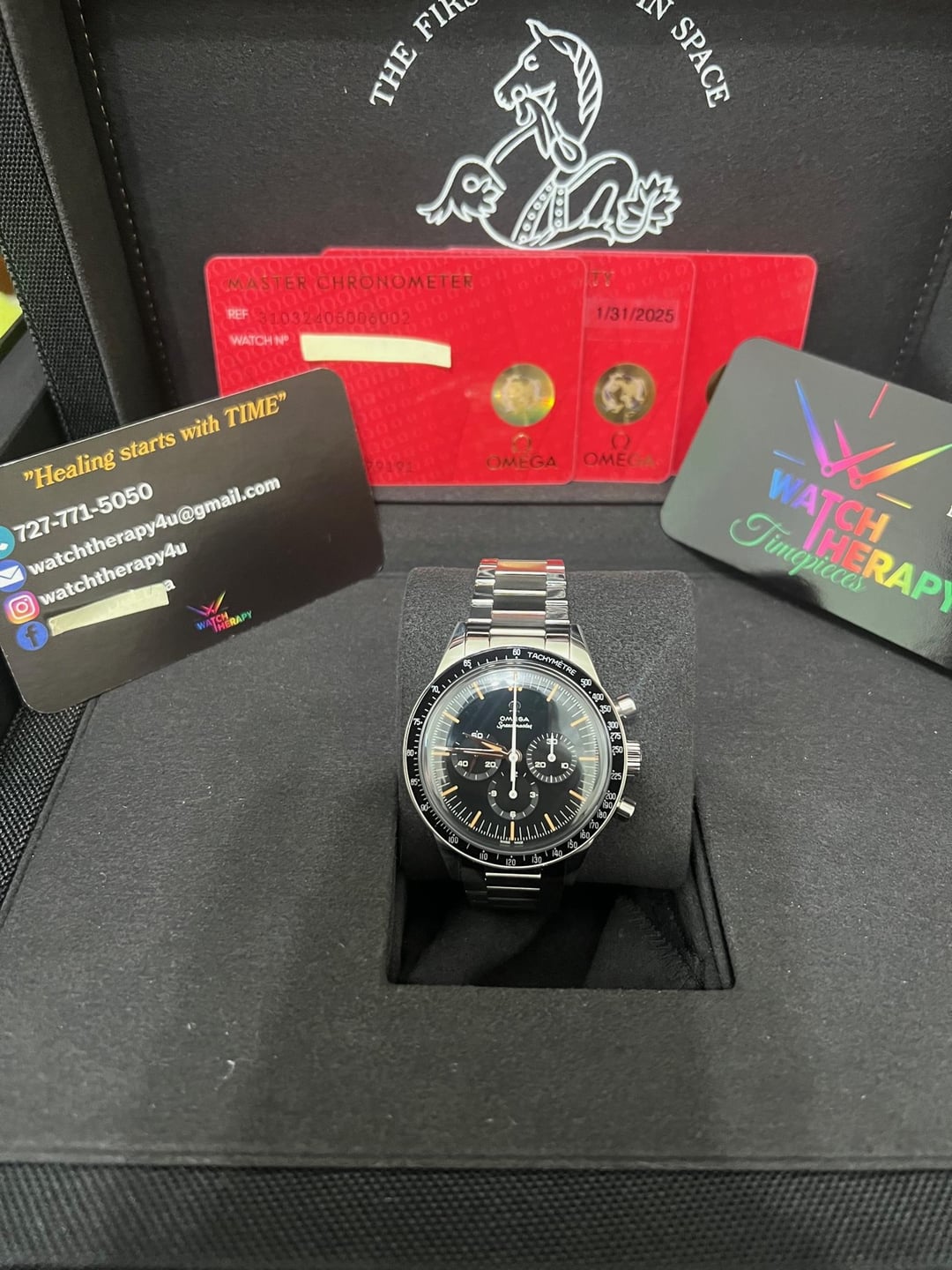 **F/S: 2025 Omega Speedmaster FOIS (First Omega in Space) Full 1/25** **Ref: 310.30.40.50.06.001** **Specs:** \* Beautiful grey-blue dial \* Manual wind \* Size 39.7mm \* Sapphire crystal (Hesalite dome form) \* 50M Water Resistance \* 50-hour reserve \* 3861 movement **Includes: Watch (all links), all cards (3)-including warranty card dated 1/25, all boxes, booklet, manuals, cloth.** **Condition:** 9/10. There are a few hairlines on the back of the case and there is a byte on the metal part of bezel at 5, insert and crystal are mint. Clasp and bracelet very few finelines. **Price: $6699.00 + Insured shipping to your local FedEx for pick-up in Con US**. I am also open to a face-to-face public transaction in or around the Tampa Florida Region, within reason. I have many strong and viable references within Reddit and from Buy/Sell/Trade Watch Facebook groups. Always willing to jump on a call or meeting link to show you the watch. Thank you and please reach out if you have any questions or concerns. Florida residents may be subject to sales tax w/o a valid reseller cert. ***No Trades, TY*** **Location**: Tampa Florida **Payment:** Zelle or Wire Timestamp: [https://imgur.com/a/JPVm6pA](https://imgur.com/a/JPVm6pA) FB: Watch Therapy Timepieces IG: [@watchtherapy4u](https://www.reddit.com/u/watchtherapy4u/)