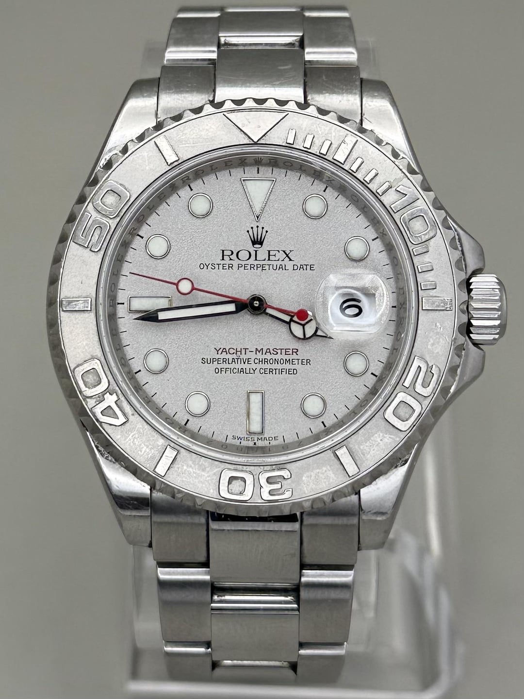 Rolex Yacht Master Mens 40mm Stainless Steel Watch Platinum Dial & Bezel 16622