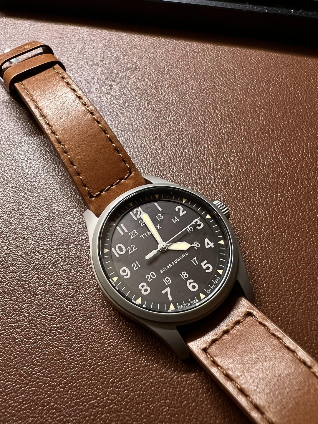 Hello! Selling my almost mint Timex Expedition North field watch in the 36mm solar variant. Price is $99 within CONUS. I have barely used this watch 4 or 5 days and it has been sitting in the box for a while, so there is absolutely no scratches dents or smudges on the dial or the bezel. The leather strap has slight creases from wearing it a few times around the edge as its a very soft eco-leather. I have the box and everything in its original state. I also got 4 nato straps for it that are unused/untouched, and if you want to take those as well we can have that as an add-on. Let me know if you have any questions! This is my first sale here and its a great little watch and I am sure you are going to love it!