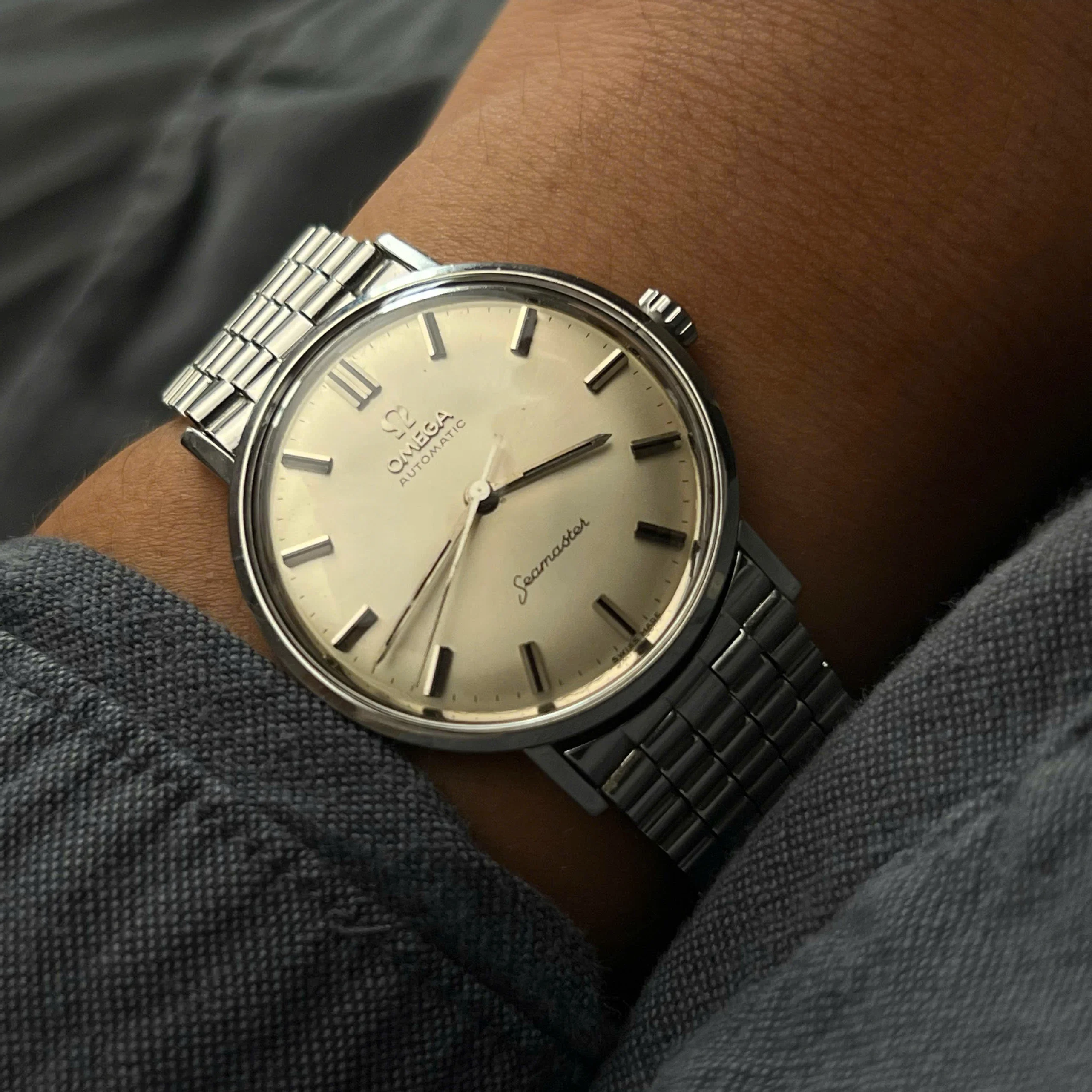 1961 Omega Seamaster ref. 14765 no-date, Cal. 552 – on 8260 “peanut” bracelet – $950