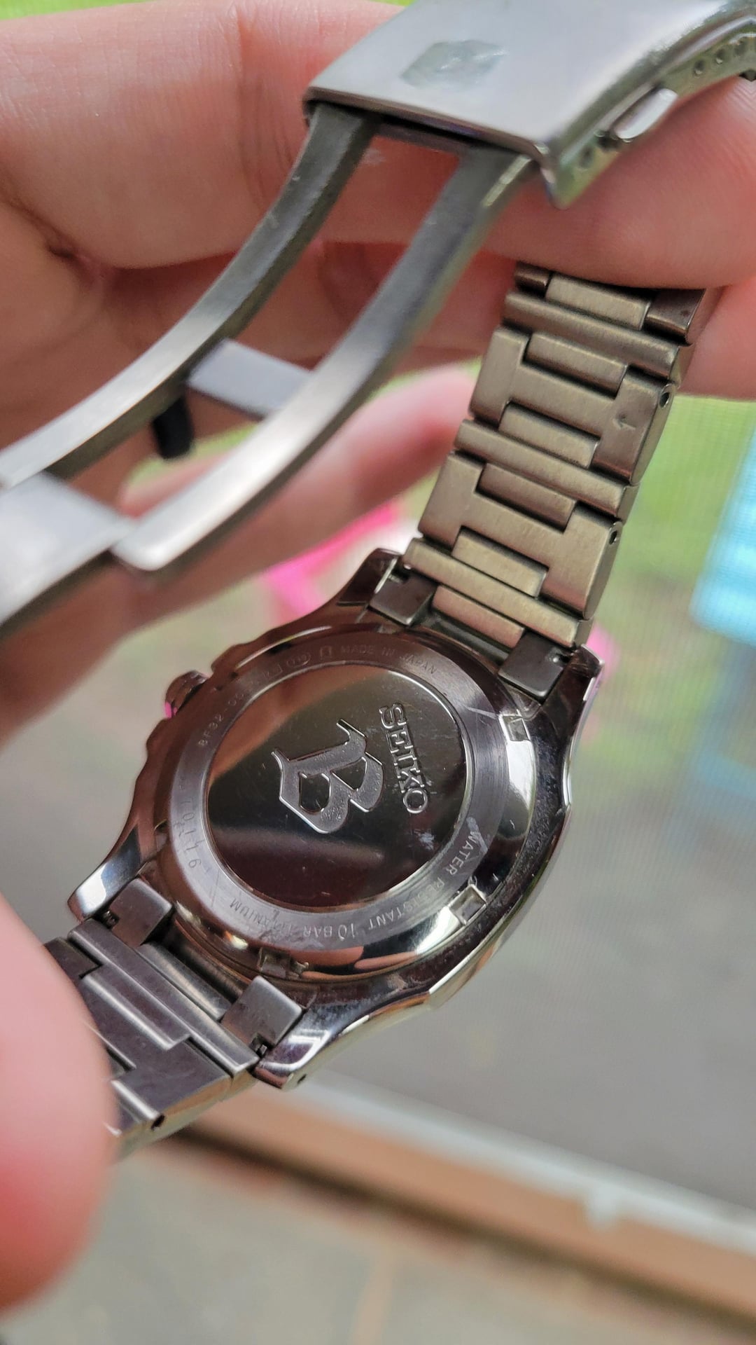 For sale today is my SAGM005. The vitals: * 8F32 HAQ perpetual calendar movement. Great GADA watch. * Titanium cushion case in a fantastic size: 38mm diameter, 45mm lug to lug, 11mm thick, 20mm lug width * Dial presents as simple black with arabics, but the intricate pattern reveals itself with closer inspection. * Titanium bracelet keeps it lightweight. Original clasp has been touched up. Still shows scratches on the logo, desk diving marks. No spare links, but it will fit up to a 6.5” wrist. Wears fantastic on straps too. * Original 8F movement was replaced with a donor. Hence the white date wheel. Condition is otherwise quite good. Battery recently changed. This is a JDM model so it’s somewhat unusual to see one for sale in CONUS. Avoid the tariffs and duties and such. I’m asking $650 shipped.