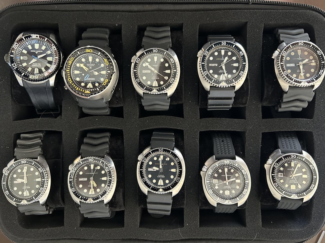 All of these watches are cared for. The first Willard has original crystal, both have original dials/hands as well. I have a couple other original Willard’s and don’t need these in my collection. All turtles are original, with the #2 having the original strap as well. The 6306 (JPM) is Kanji/English, as is the #1 6309-7040. The #2 6309-7040 is Roman numeral/English. The other turtles are 6309-7049’s. I can’t test these exactly, but they all run well and are within a minute or so of my phone within a 24hr period. The kinetic diver has original papers/box. The Citizen has been in the family, and I just don’t give it any wrist time. None of the others have original packaging/papers. Last pic is prices/date of manufacture for all vintage watches. I will ship US only, and PayPal F&F only. PM me any questions, or if you want more detailed photos.