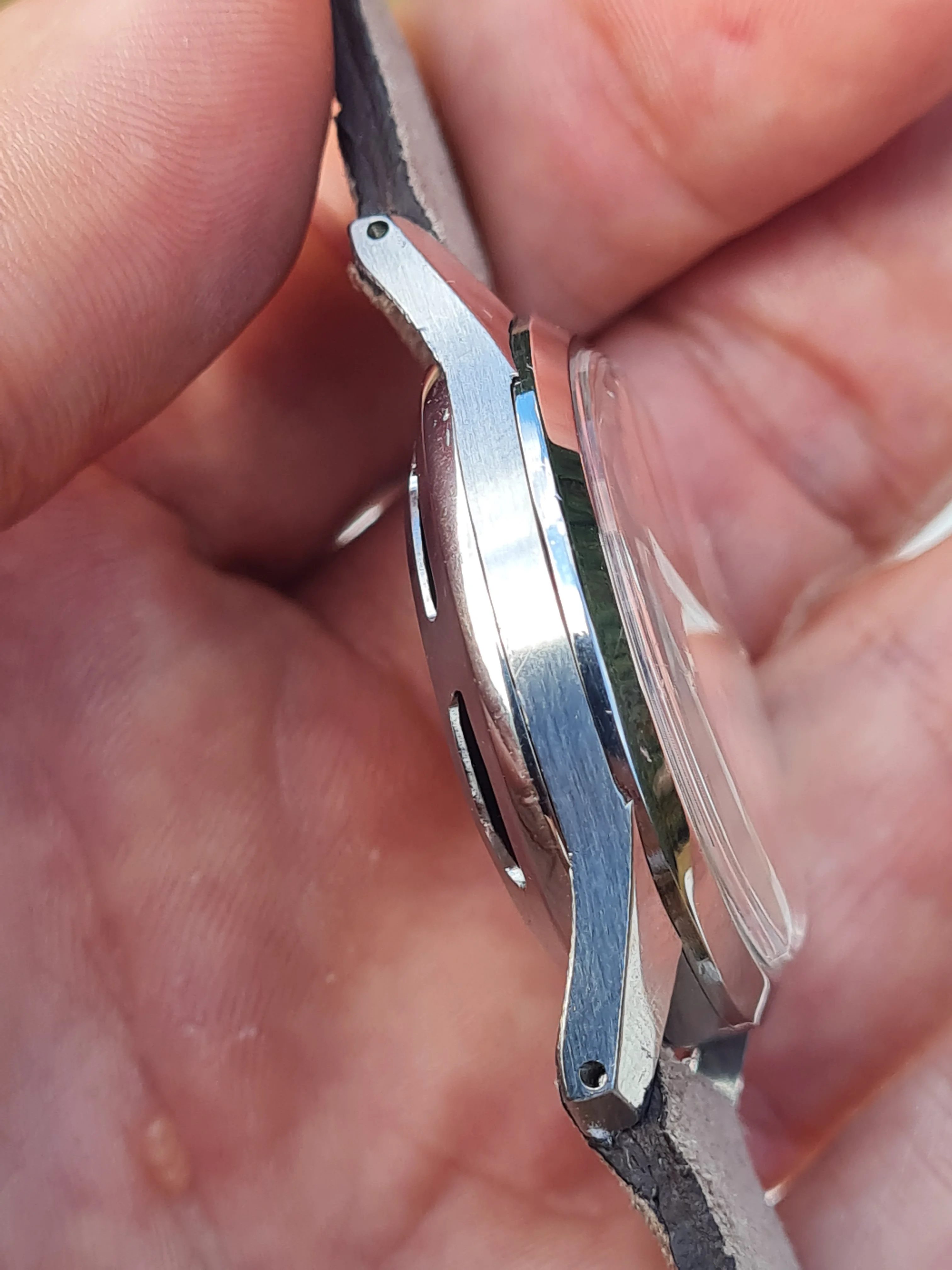 The case is a fully stainless steel case with 34mm in diameter and 42mm over the lugs.