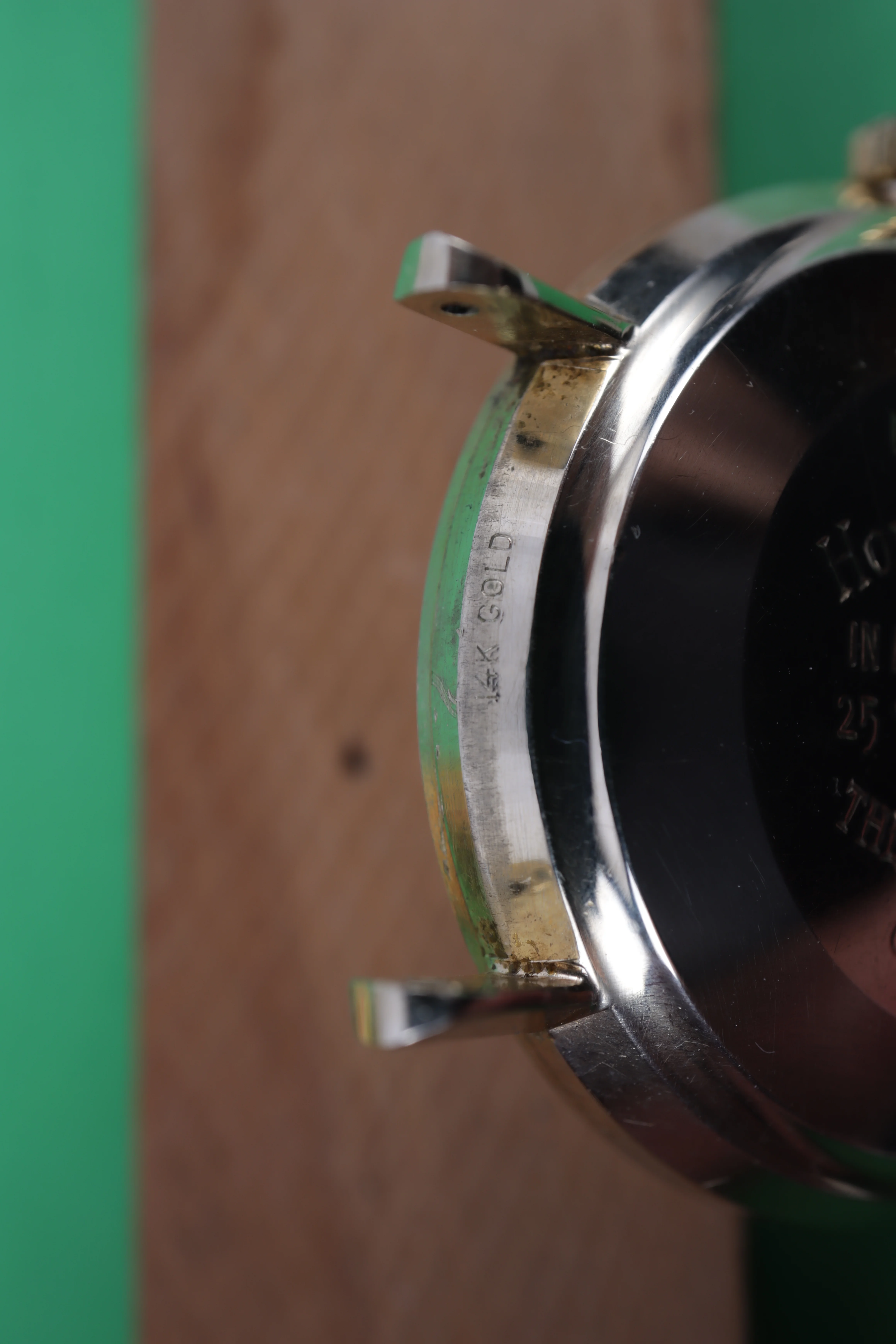 Case: Solid 14k. Original facets and edges very sharp. Shows only minor wear commensurate with having been worn very little.