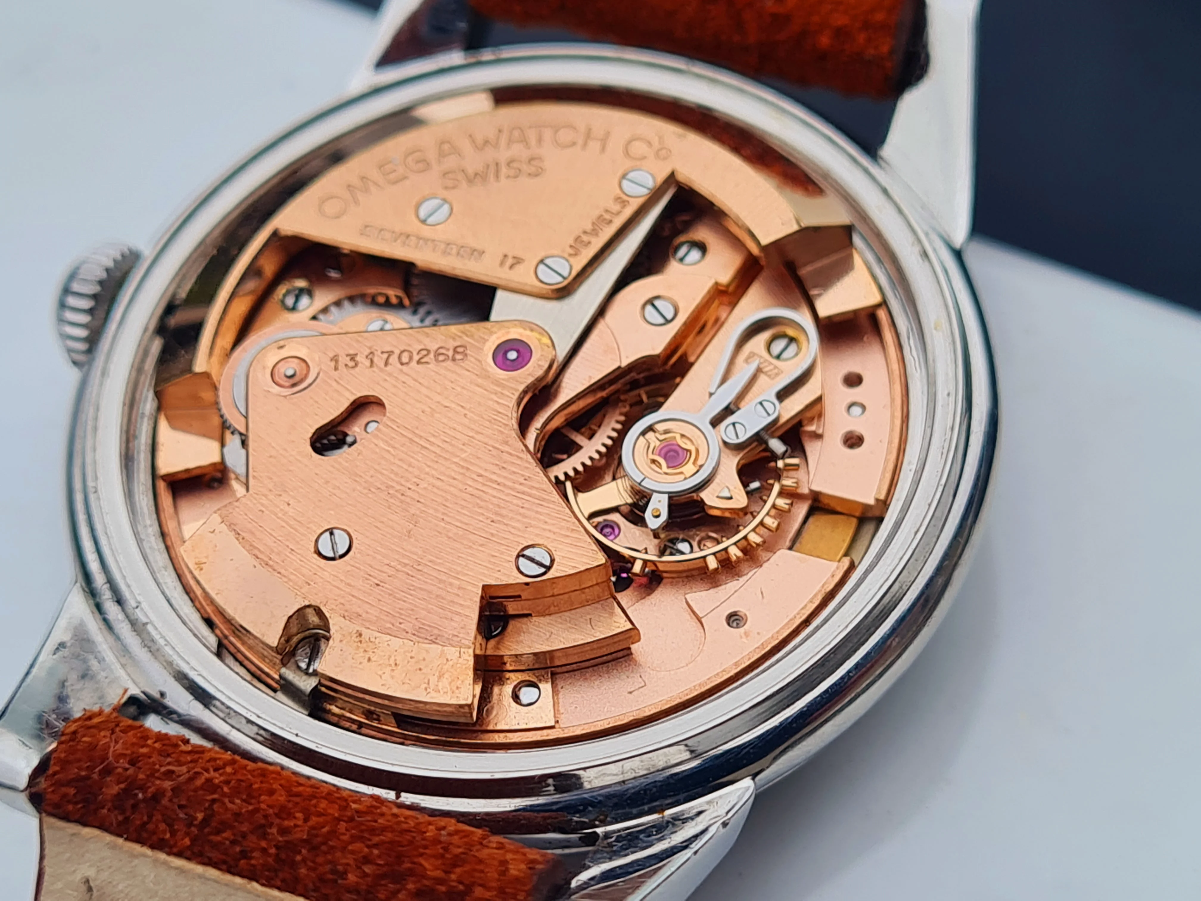 The movement is a nice red golden Omega 355 with a swan neck fine adjustment.