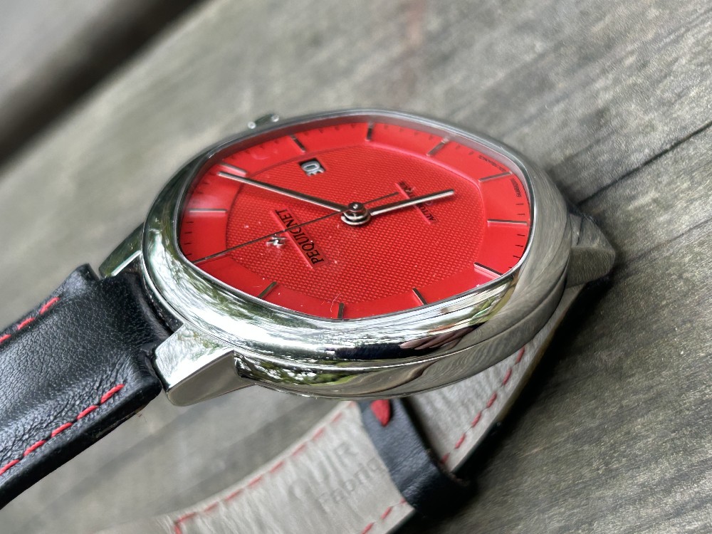 Je vends une montre rare à trouver en occasion, une Péquignet Exagone cadran rouge de 2021, provient d'un AD officiel Péquignet