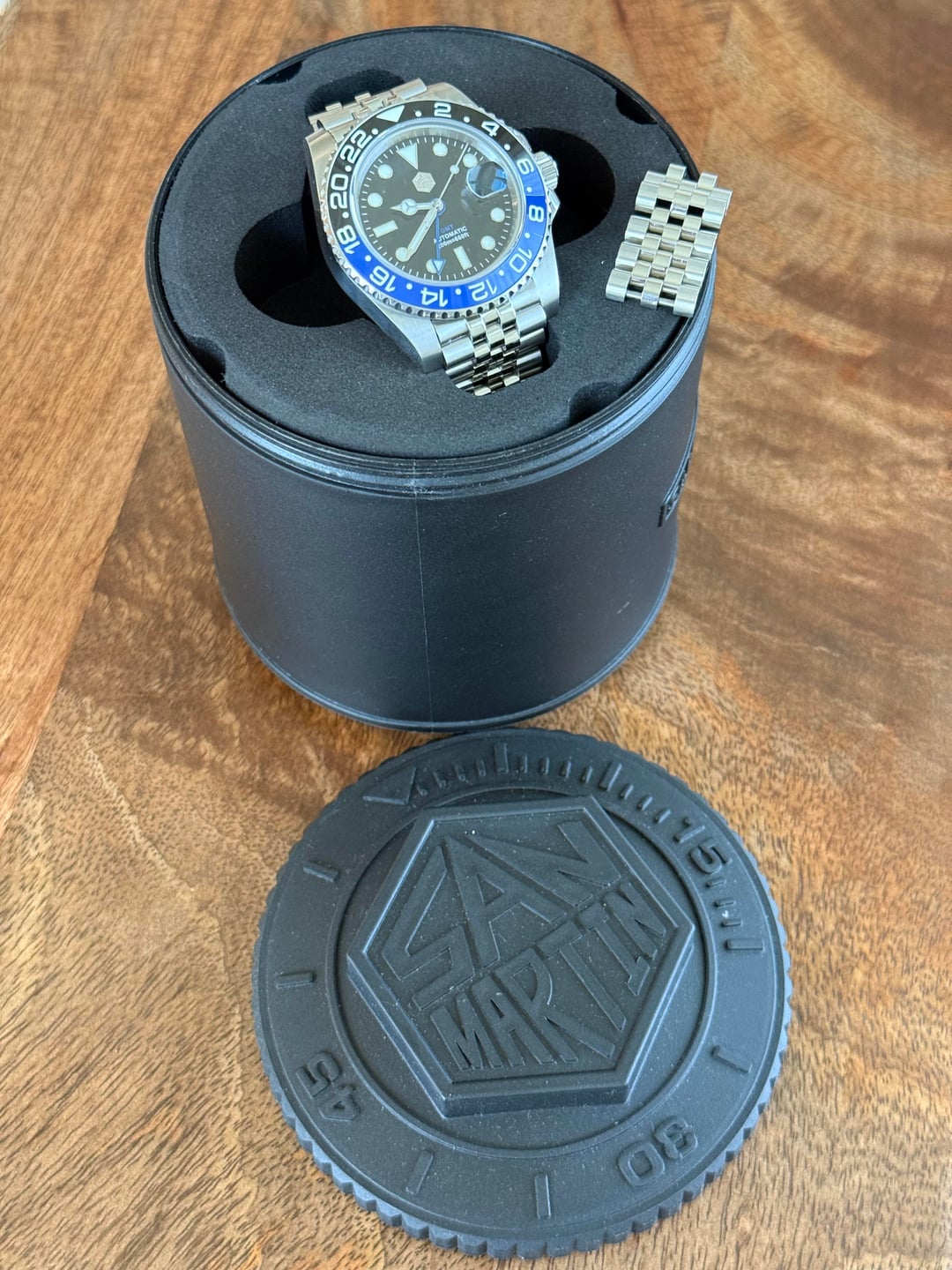 ![[WTS] San Martin GMT Master II Batman Homage. Excellent Condition. US Seller. 7](https://cdn-cf.watchpatrol.net/600x600/img/full/d02e8c28d3bae5705af67e2c76f943e3878af593.jpg)
