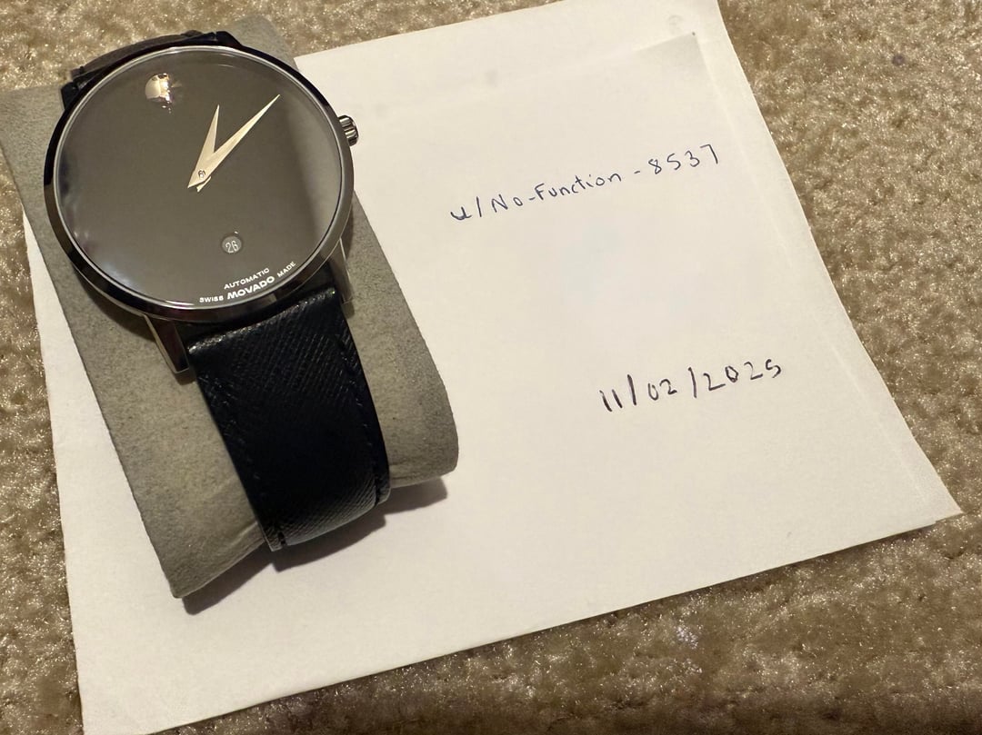 Hey all — selling my Movado Museum Classic Automatic. A beautifully minimalist and timeless piece, barely worn and in excellent condition. Perfect for gifting during holiday season! • Condition: Excellent, barely worn (purchased Aug 2025) • Warranty: Valid until August 2027 (2 years remaining) • Includes: Original box and papers • MSRP: $995 + tax; Asking: $475 OBO Official link: [Movado Museum Classic](https://www.movado.com/us/en/shop-watches/museum-classic-0608024.html) Shipping & Payment: Local pickup or $15 shipping (CONUS) Payment via PayPal F&F, Venmo, or Cash App Notes:No trades at this time. Feel free to DM me for additional photos or questions!