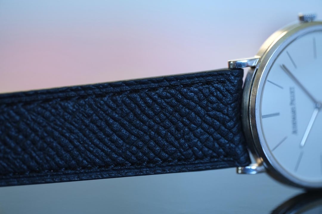 *BUY WITH CONFIDENCE, NEARLY 300 GLOWING REVIEWS!* Whether you need to add a dress watch to the ol’ collection, want something fun for the office, or looking to get into the Holy Trinity at a great price point, it’s hard to beat an Audemars Piguet Ultra Slim. This is a great example in solid 18K white gold for that stealth wealth look, with wound movement that was recently serviced and ready to enjoy! DIAL: Beautiful silver/gray dial with crisp black lettering that pops in the light. Has a subtletexture to it, not quite linen, almost like stucco, giving it some nice depth. Very light wear seen up close but all in appears near mint on the wrist - a classy two-hander! CASE: Crisp lines and thick lugs with sharp gold hallmarks and regular vintage wear throughout, mostly seen on the non crown side and a bit on bezel. 31.5MM and very thin so wears like a 33MM Calatrava (photographed on my 6.6 inch wrist.) Being one of the newer ultra slims, the case is still super thin but has some nice weight to it - a lot of gold for the size! STRAP: Comes on a nice new aftermarket black leather strap with new buckle. MOVEMENT: Hand wound movement was serviced by previous owner, winding and setting smoothly and running strong. ACCESSORIES: Watch only. PRICE: $3850 which will include 2 day fully insured shipping through FedEx anywhere in the US. Face-to-face deal in the Los Angeles area is always welcome, with a small discount offered. Payment via Zelle or Bank Wire. No returns unless misrepresented and it absolutely will not be, I am a passionate collector first and foremost and I go out of the way to treat buyers the way I want to be treated and I’m the buyer. Lots of great feedback to show that. TIMESTAMP: https://imgur.com/a/kfDVzeC Follow me here and on IG at thewriteroftime for more cool watches! Thanks! Richard